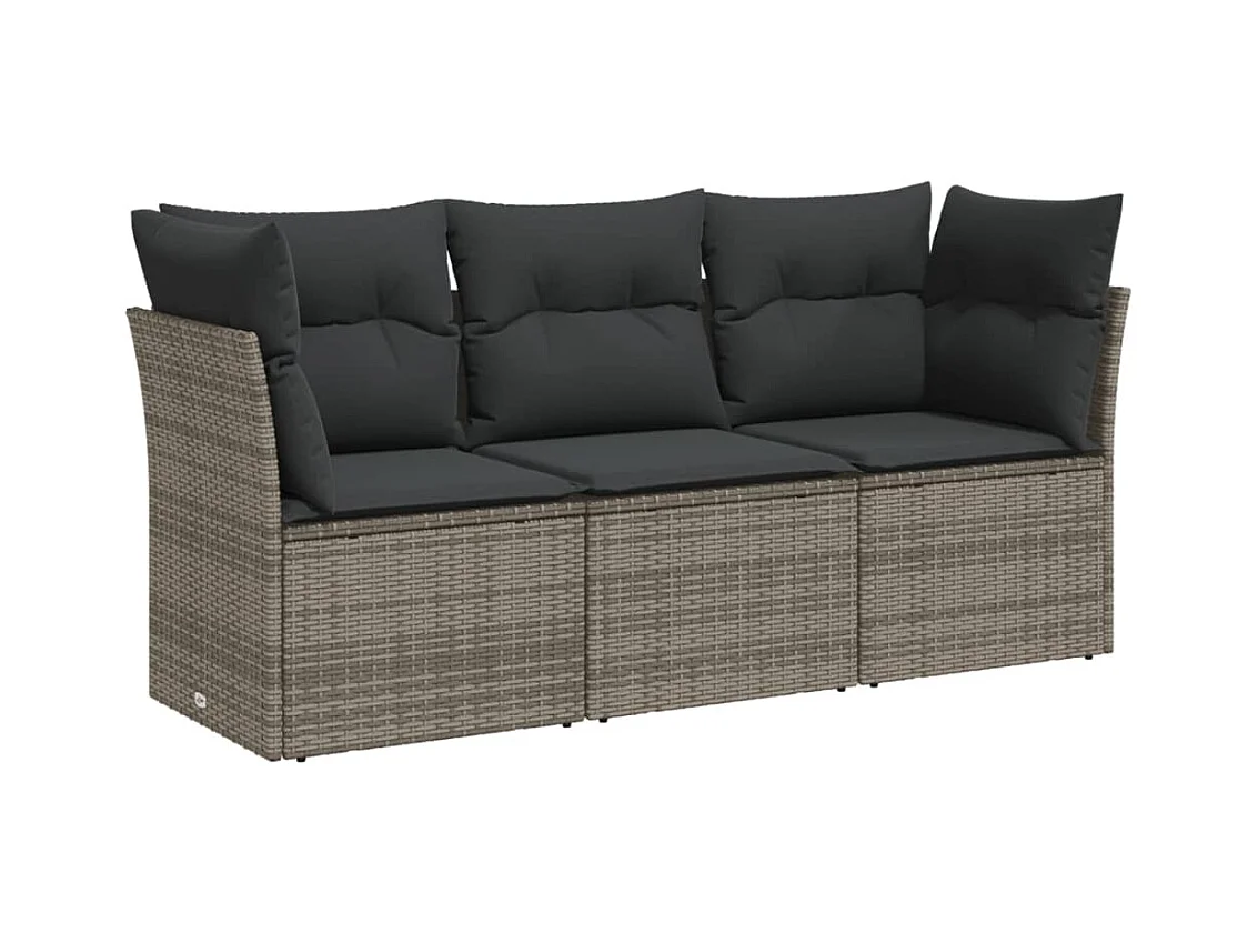 Set Divani da Giardino 3 pz con Cuscini Grigio in Polyrattan