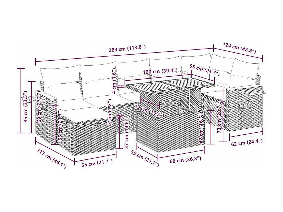 Set Divano da Giardino 6 pz con Cuscini Nero Polyrattan Acacia