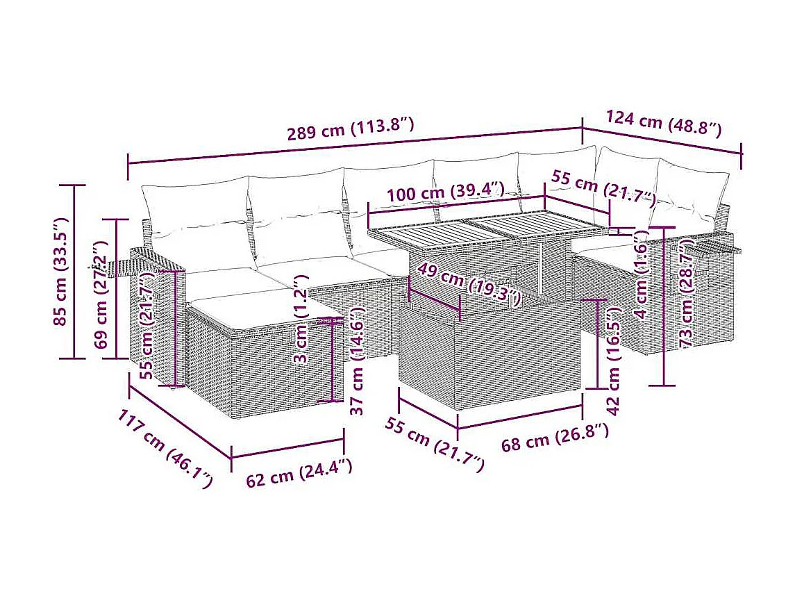 Set Divani da Giardino con Cuscini 8 pz Nero in Polyrattan