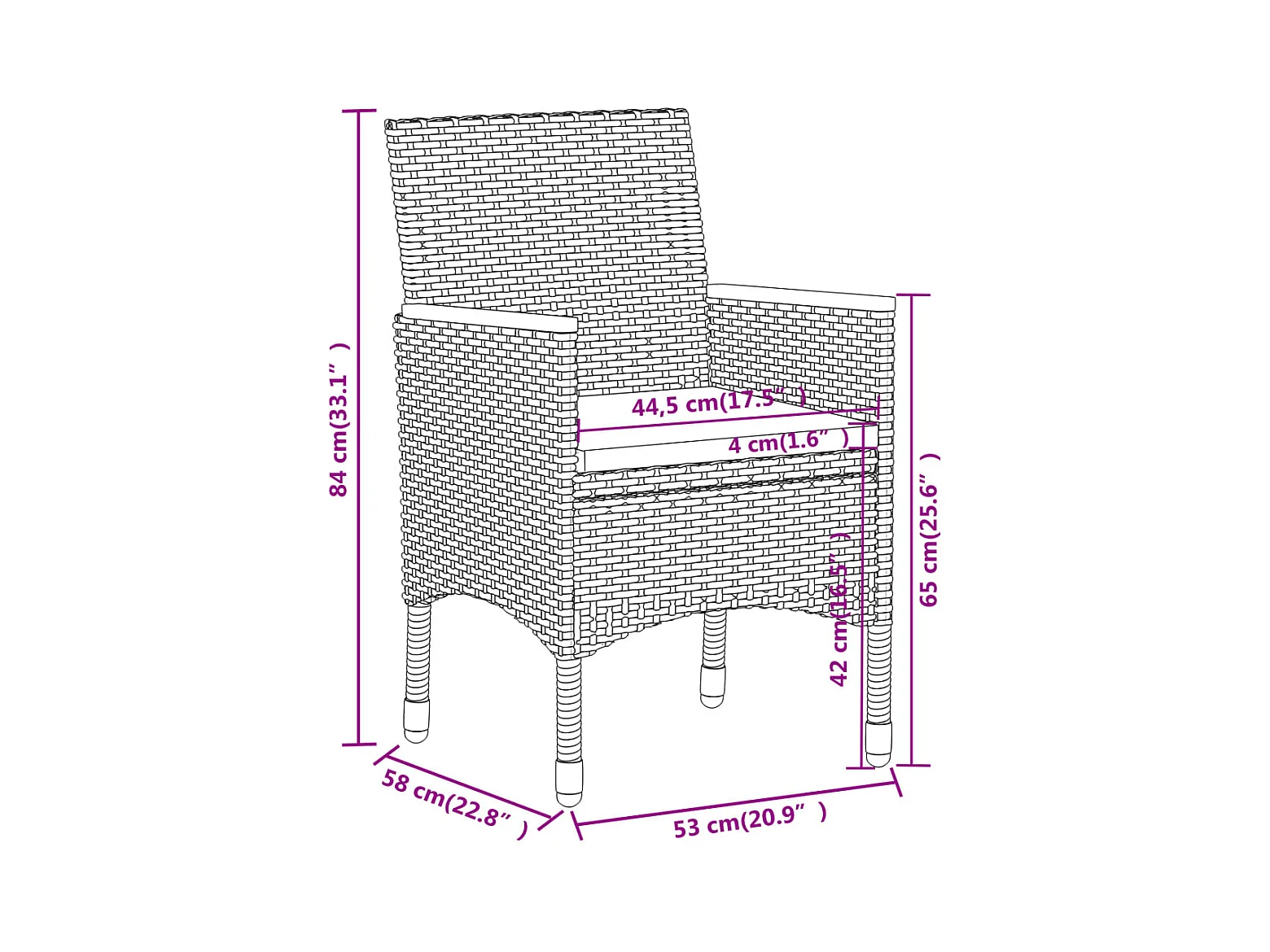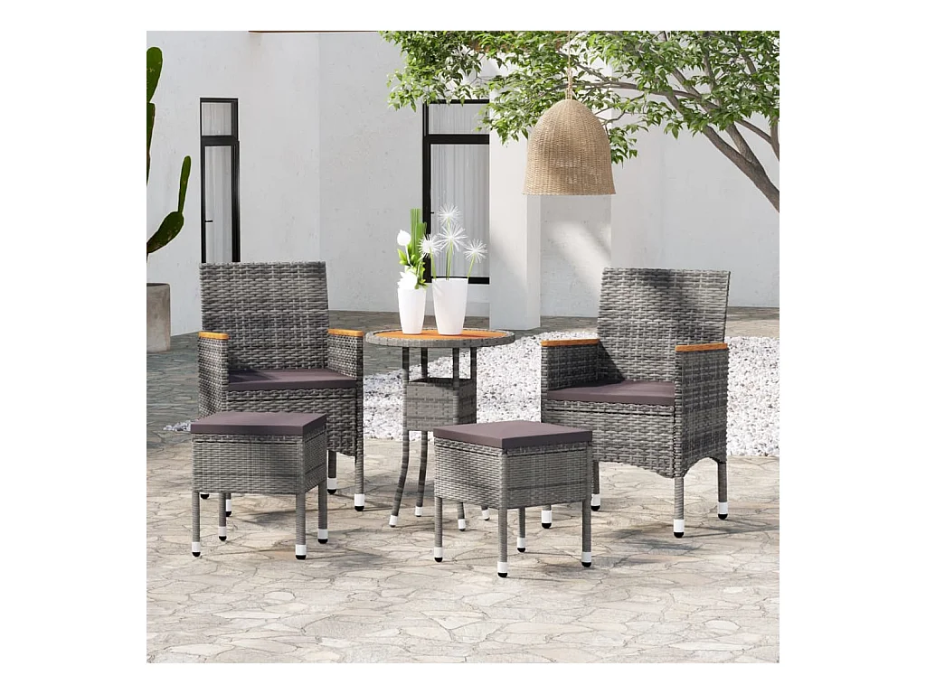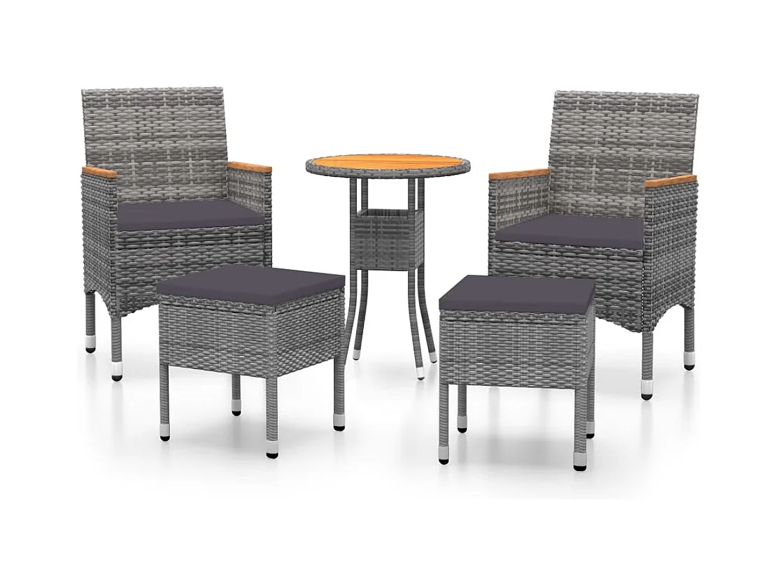Set Bistrot da Giardino 5pz Polyrattan e Vetro Temperato Grigio