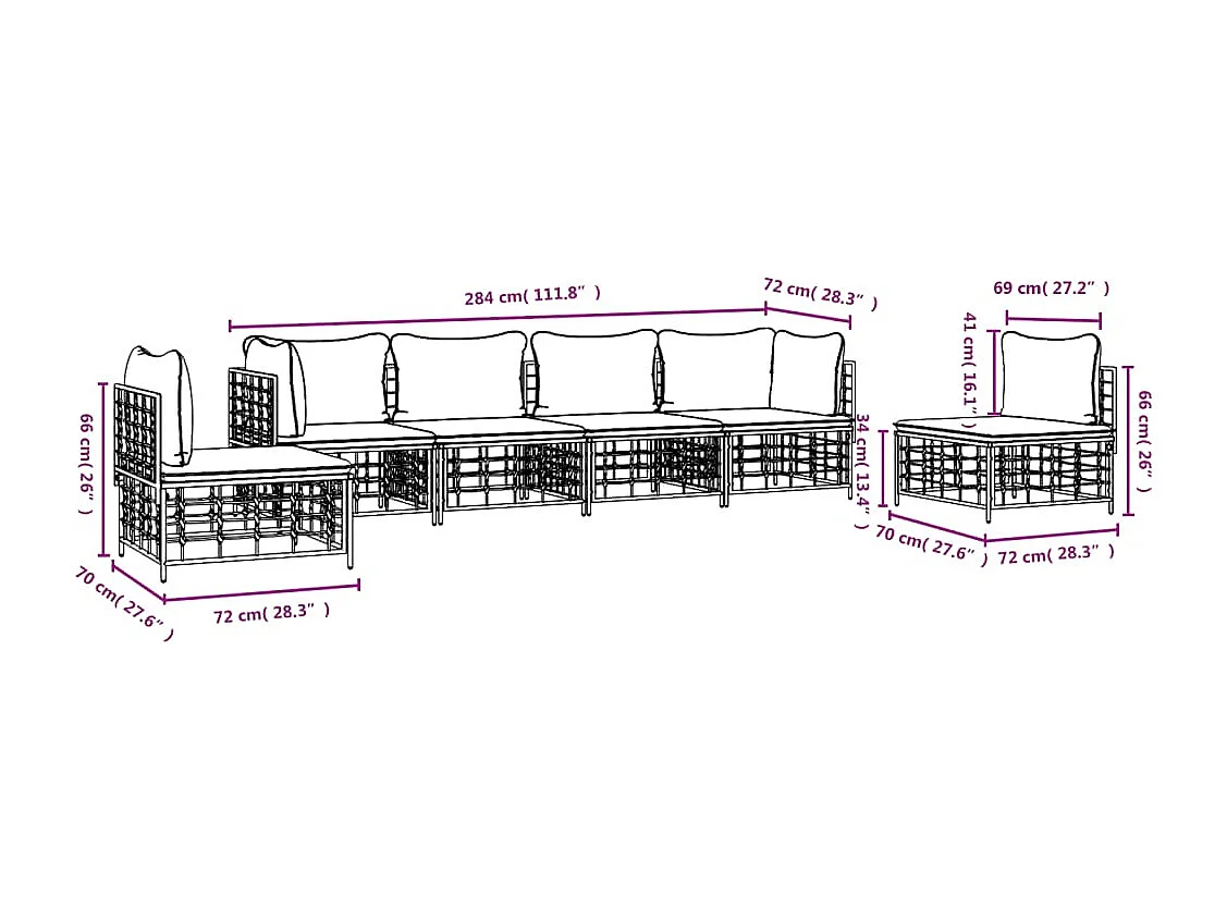 Set Divani da Giardino 6 pz con Cuscini Antracite in Polyrattan