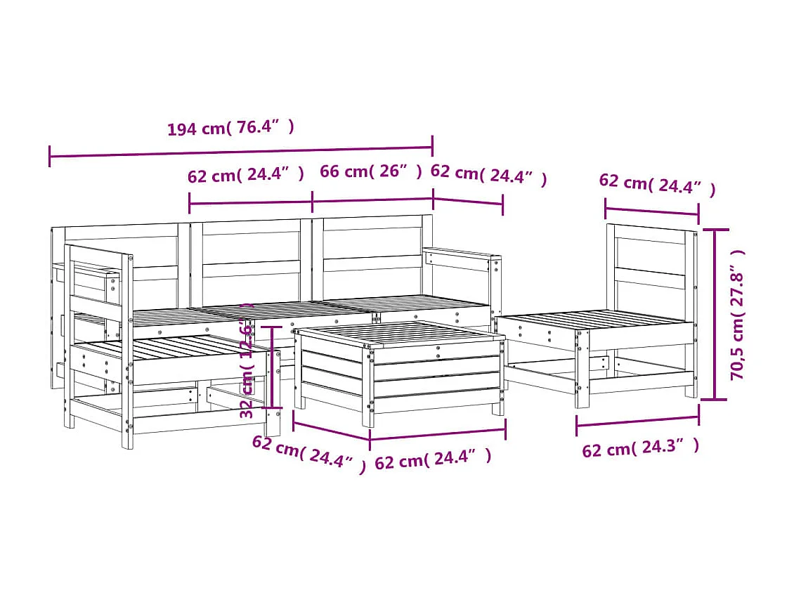 Set Divani da Giardino 6 pz in Legno Massello di Pino