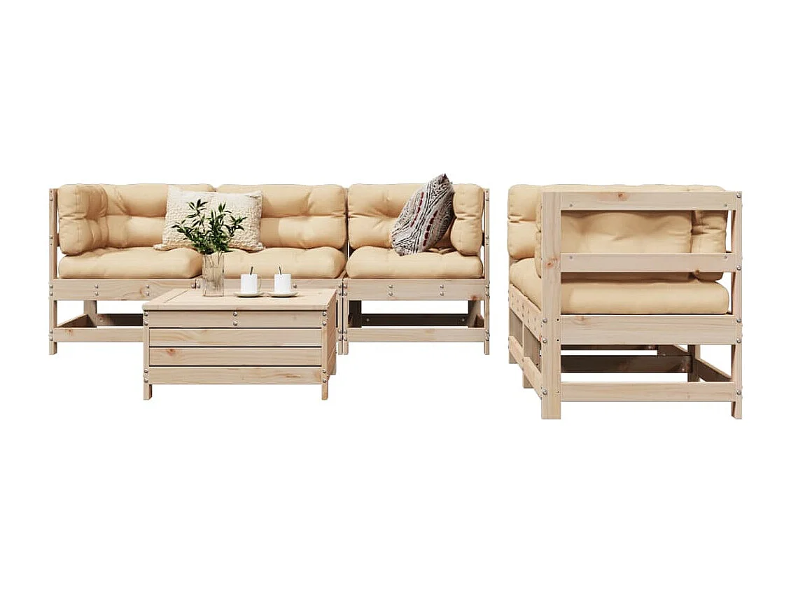 Set Divani da Giardino 6 pz in Legno Massello di Pino