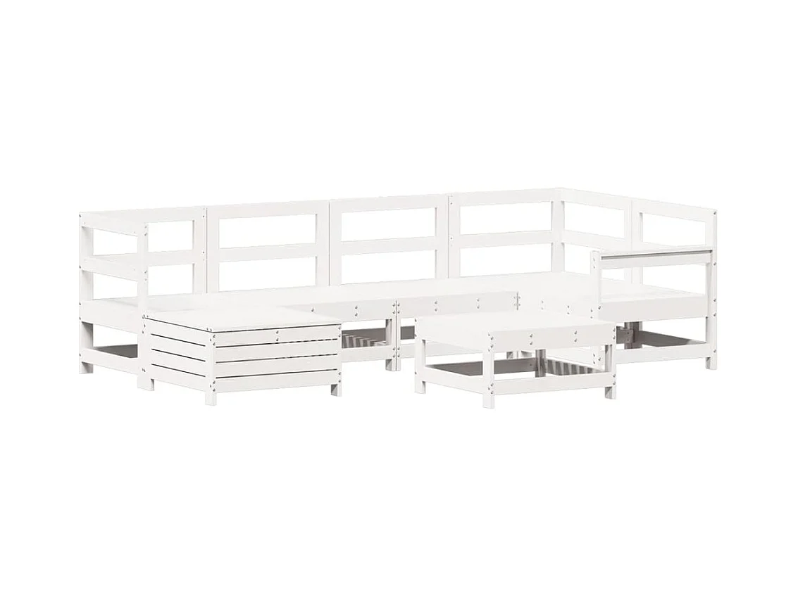 Set Divani da Giardino 7 pz Bianco in Legno Massello di Pino