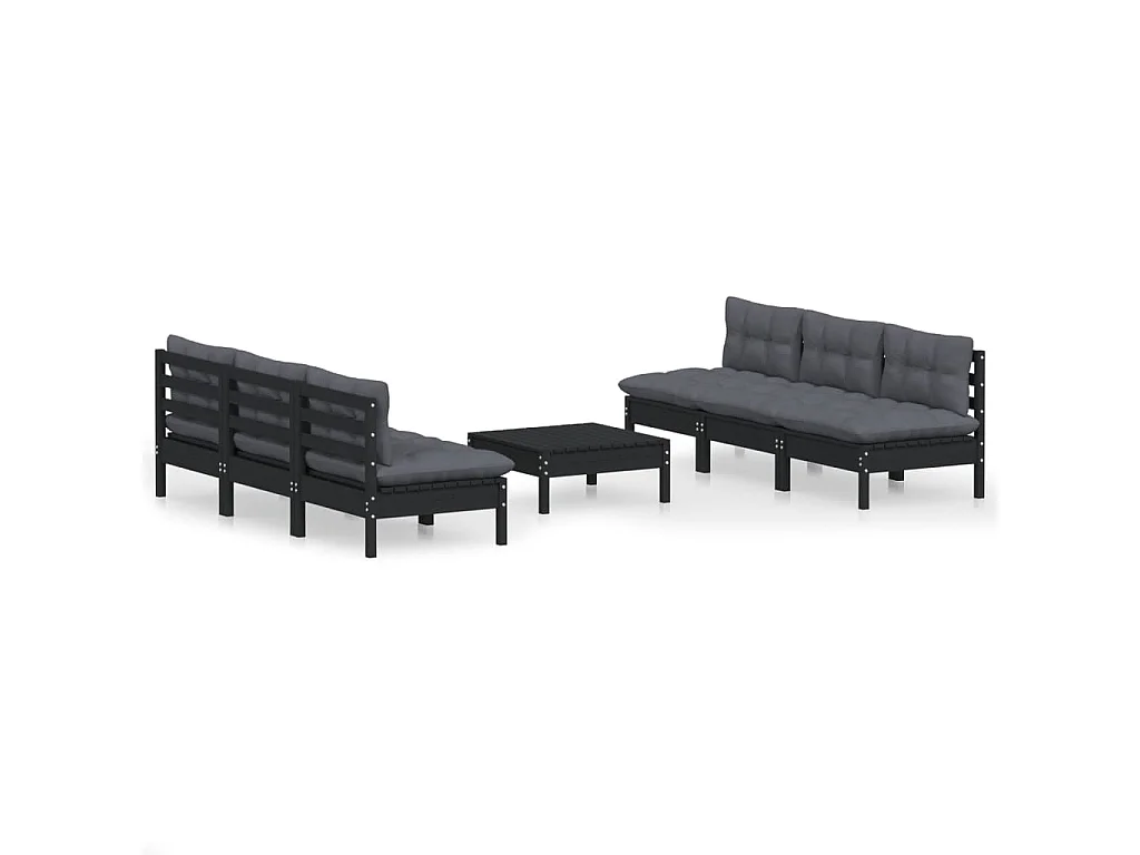 Set Divani da Giardino 7 pz con Cuscini Antracite Legno di Pino