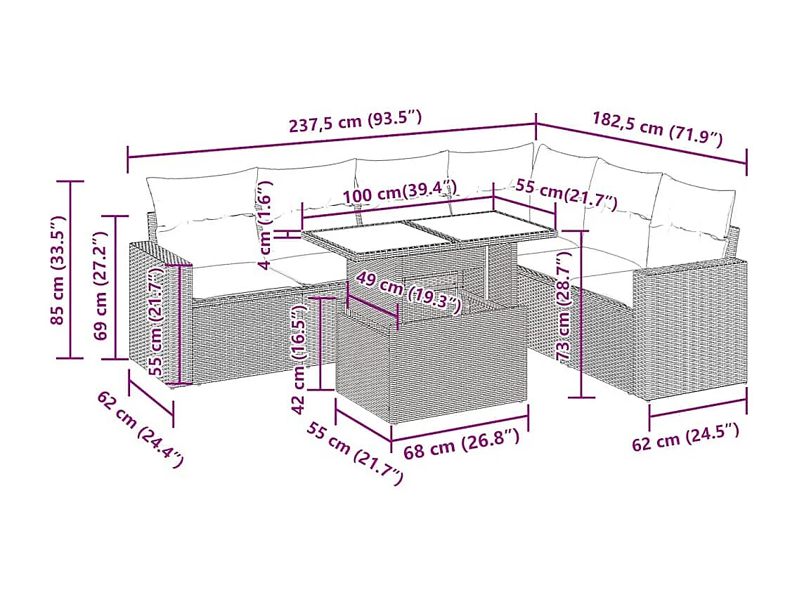 Set Divani da Giardino 7 pz con Cuscini Beige in Polyrattan