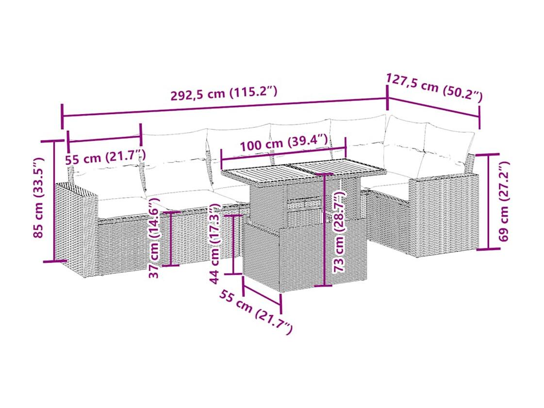 Set Divani da Giardino 7 pz con Cuscini Beige in Polyrattan