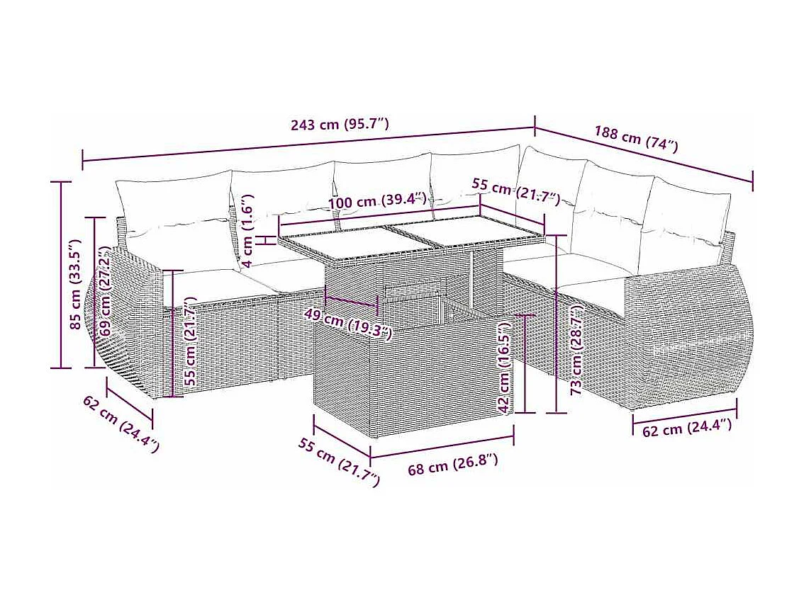 Set Divani da Giardino 7 pz con Cuscini Beige in Polyrattan