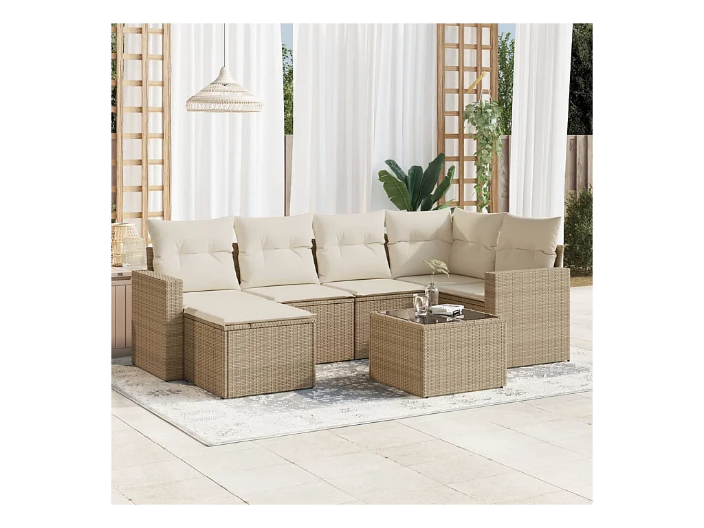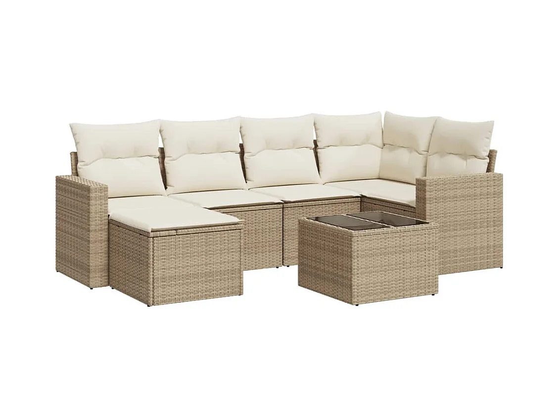 Mobile da giardino con cuscini 7 pz in resina intrecciata beige