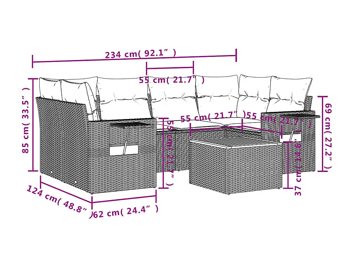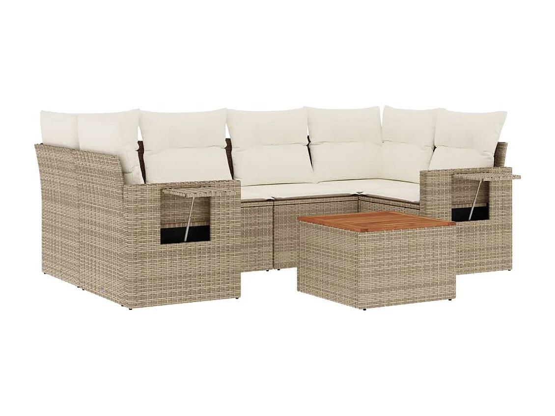 Mobile da giardino con cuscini 7 pz in resina intrecciata beige