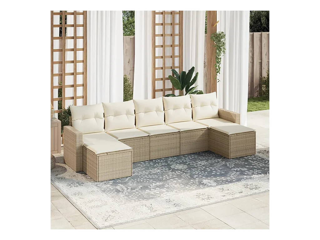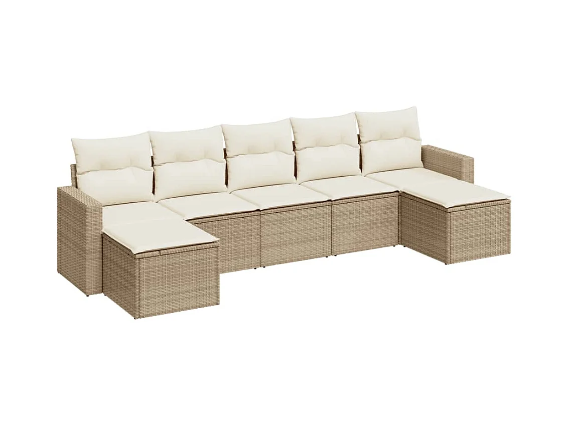 Mobile da giardino con cuscini 7 pz in resina intrecciata beige