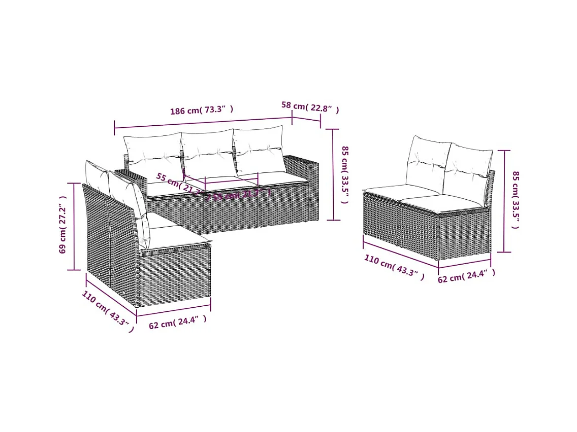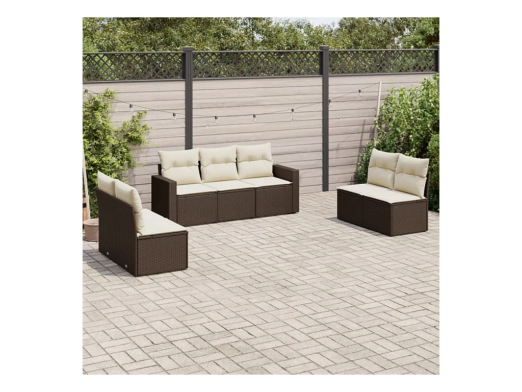 Mobile da giardino con cuscini 7 pz in resina intrecciata marrone