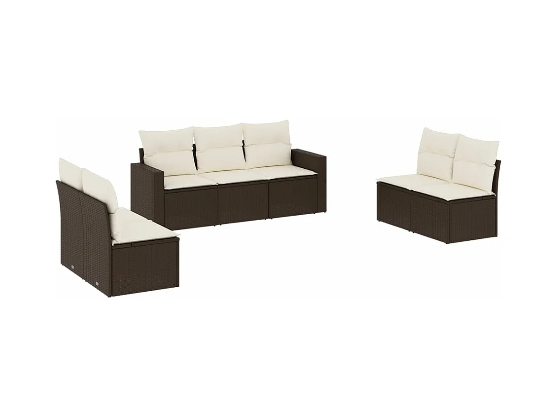 Mobile da giardino con cuscini 6 pz in resina intrecciata marrone