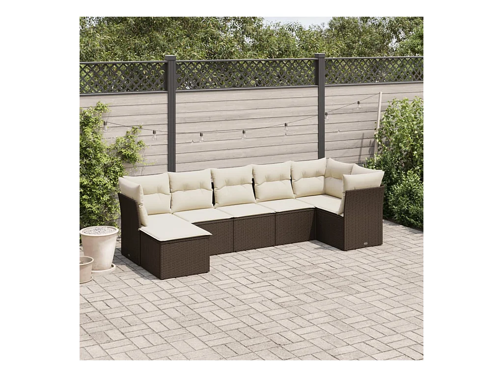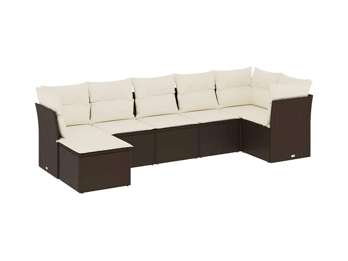 Set Divani da Giardino 7 pz con Cuscini Marrone in Polyrattan