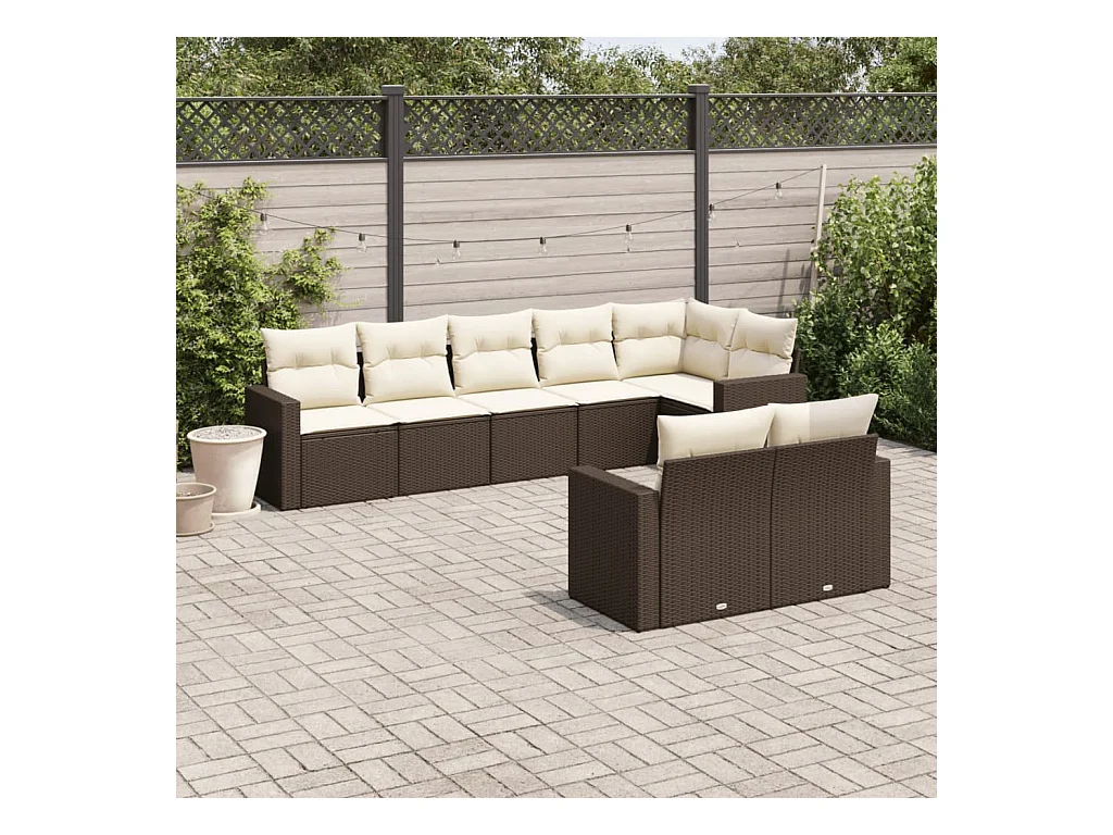 Mobili da giardino da 8 pezzi con cuscini in resina intrecciata marrone