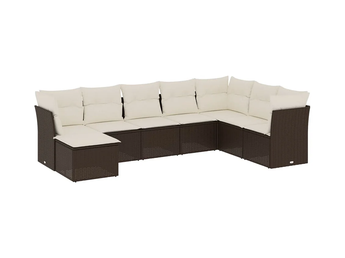 Set Divani da Giardino 8 pz con Cuscini Marrone in Polyrattan