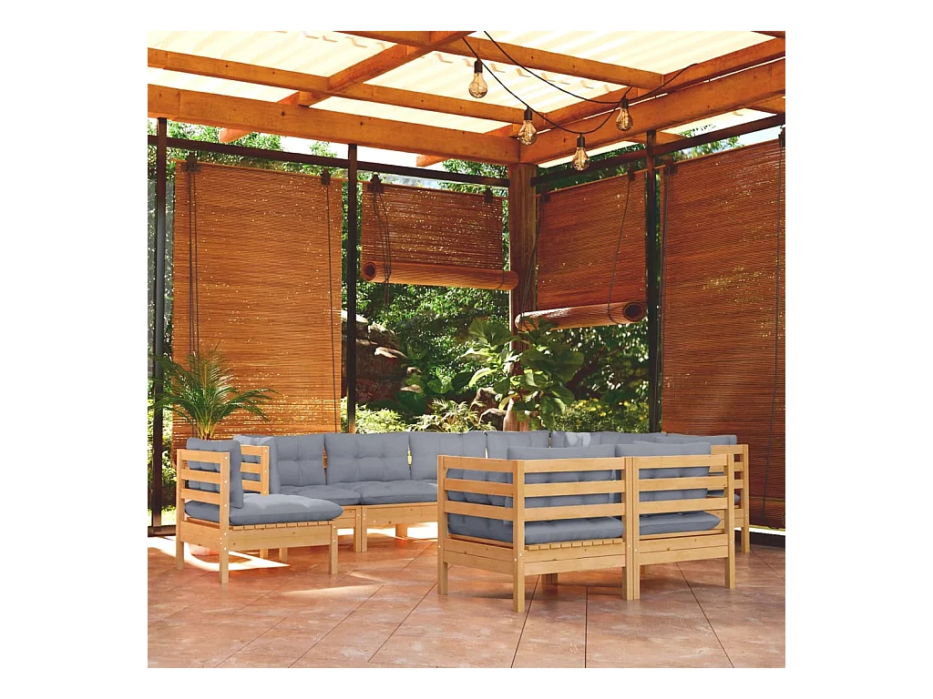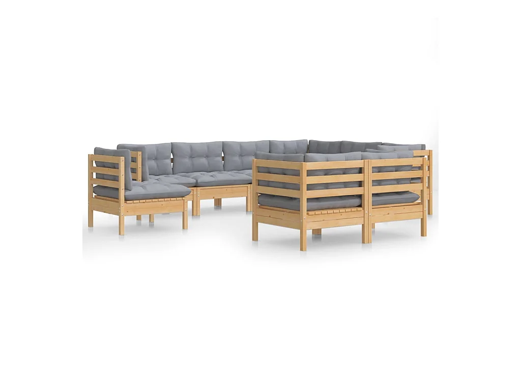 Set Divani da Giardino 9 pz con Cuscini Grigi Massello di Pino