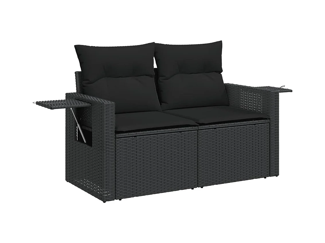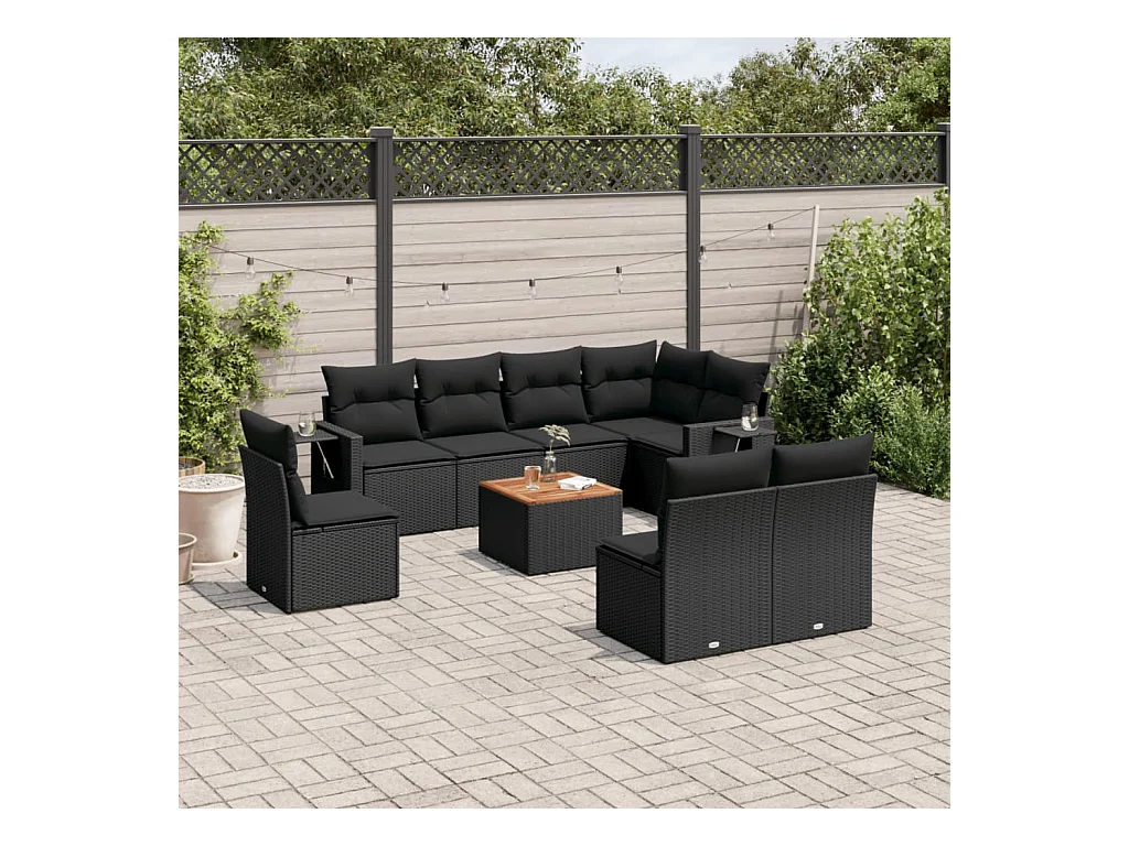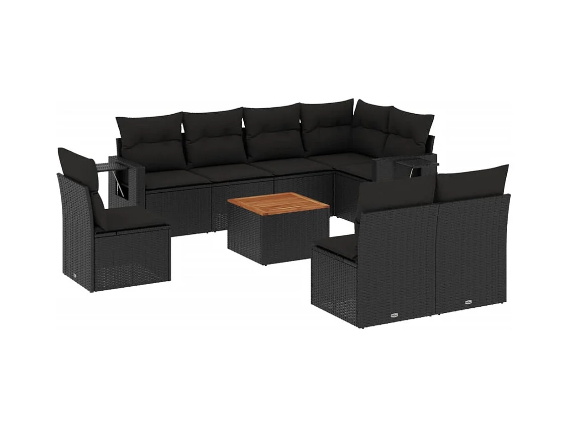 Mobili da giardino da 9 pezzi con cuscini in resina intrecciata nera