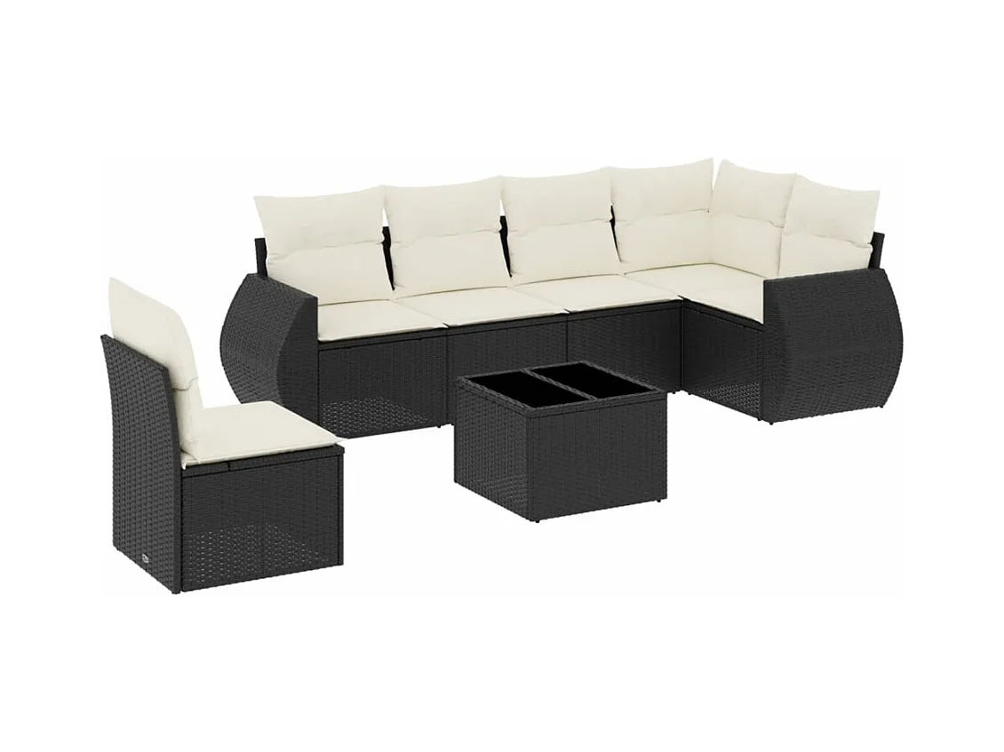 Set Divani da Giardino con Cuscini 7pz Nero Polyrattan