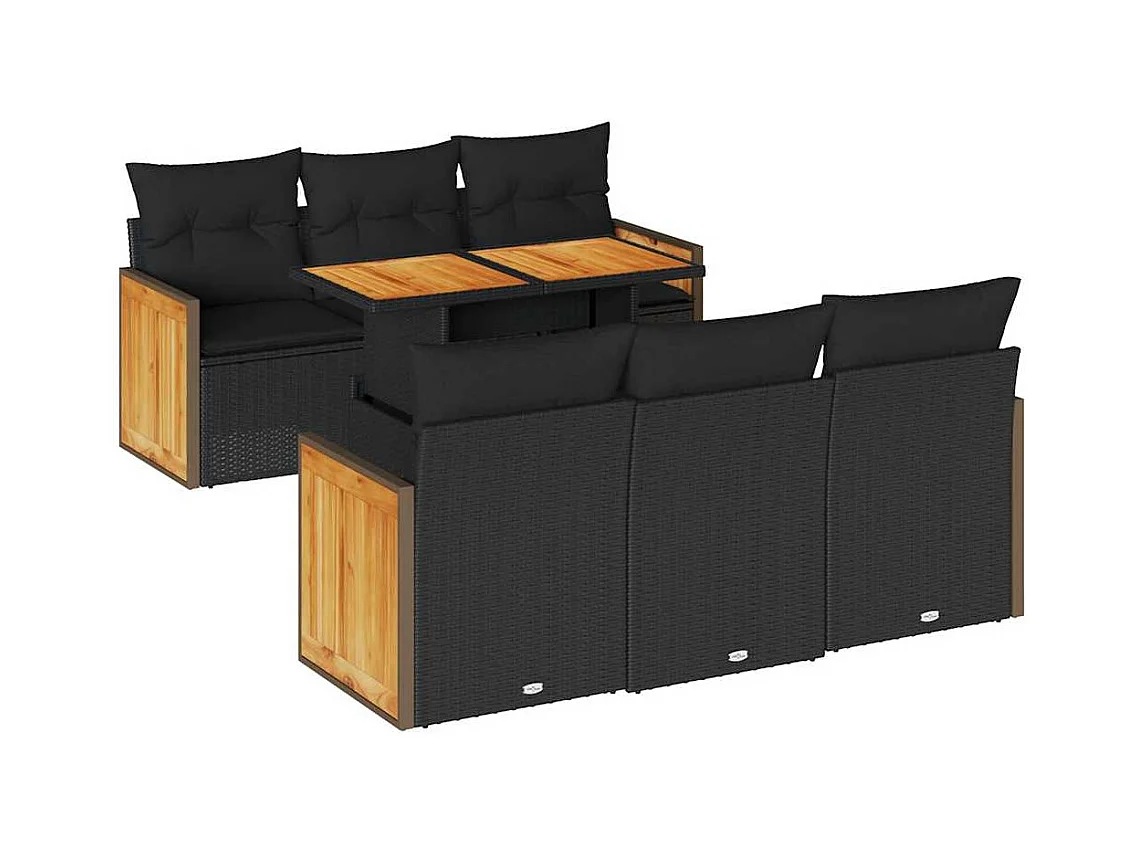 Set Divani da Giardino con Cuscini 7pz Nero Polyrattan Acacia