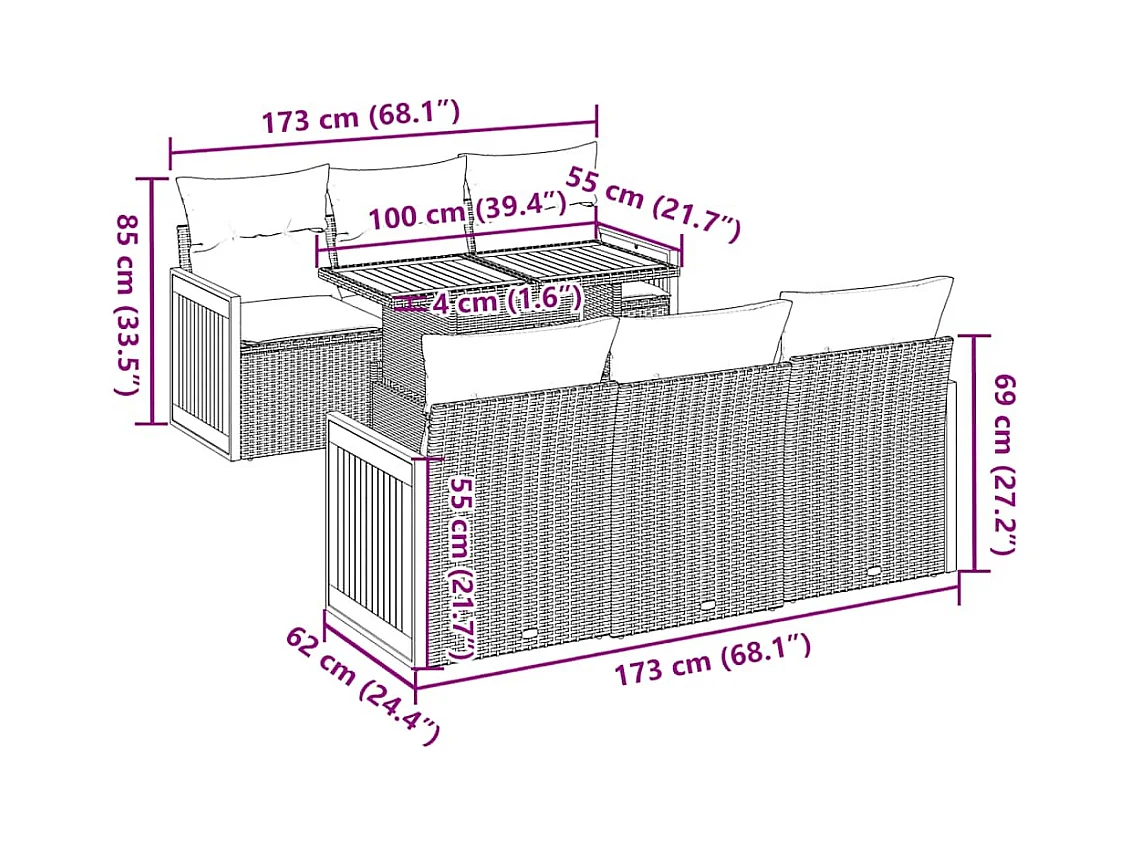 Set Divano da Giardino 6 pz con Cuscini Nero in Polyrattan