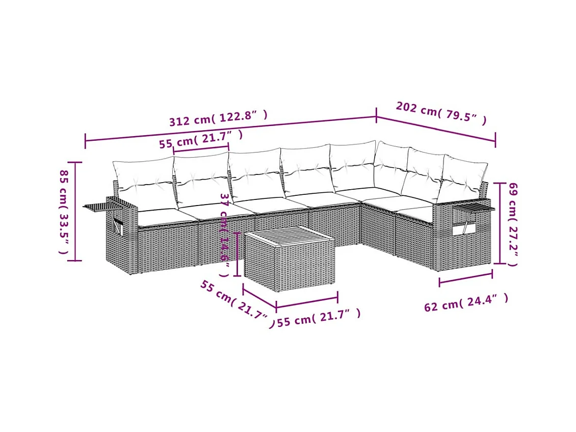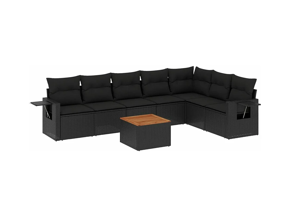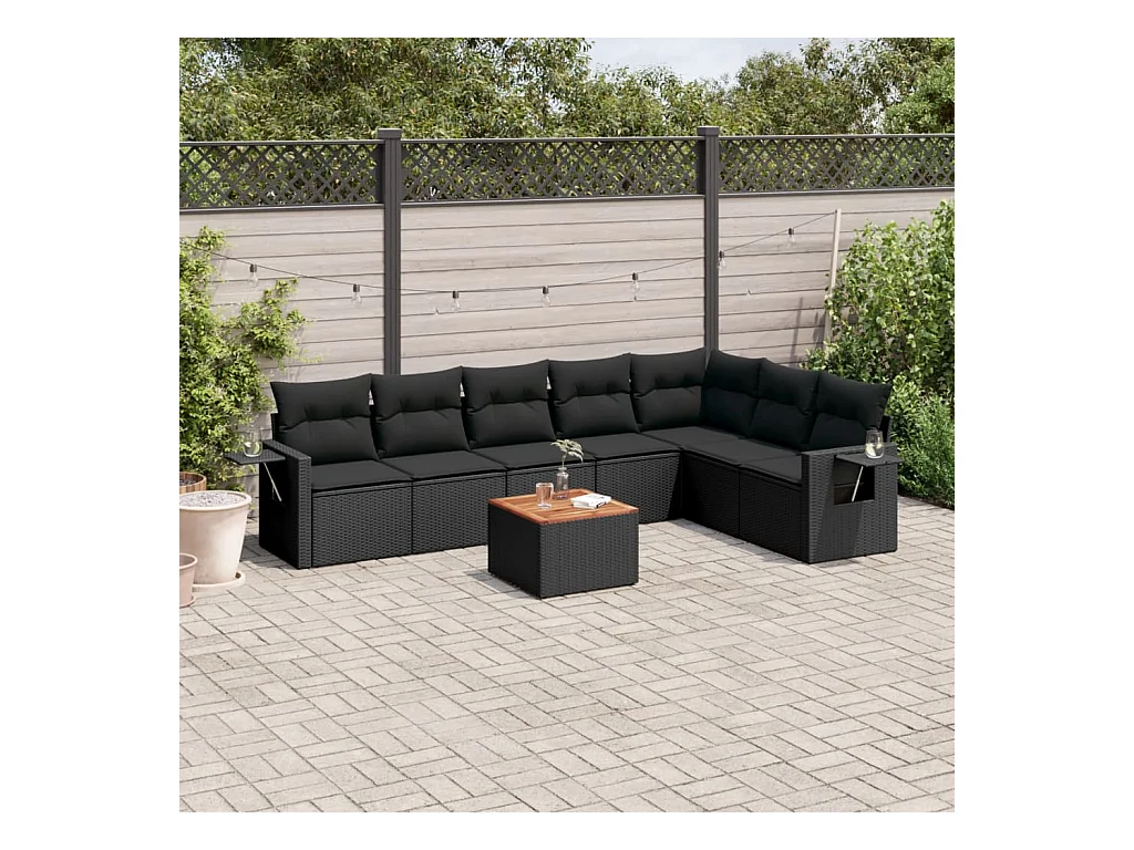 Mobili da giardino da 8 pezzi con cuscini in resina intrecciata nera