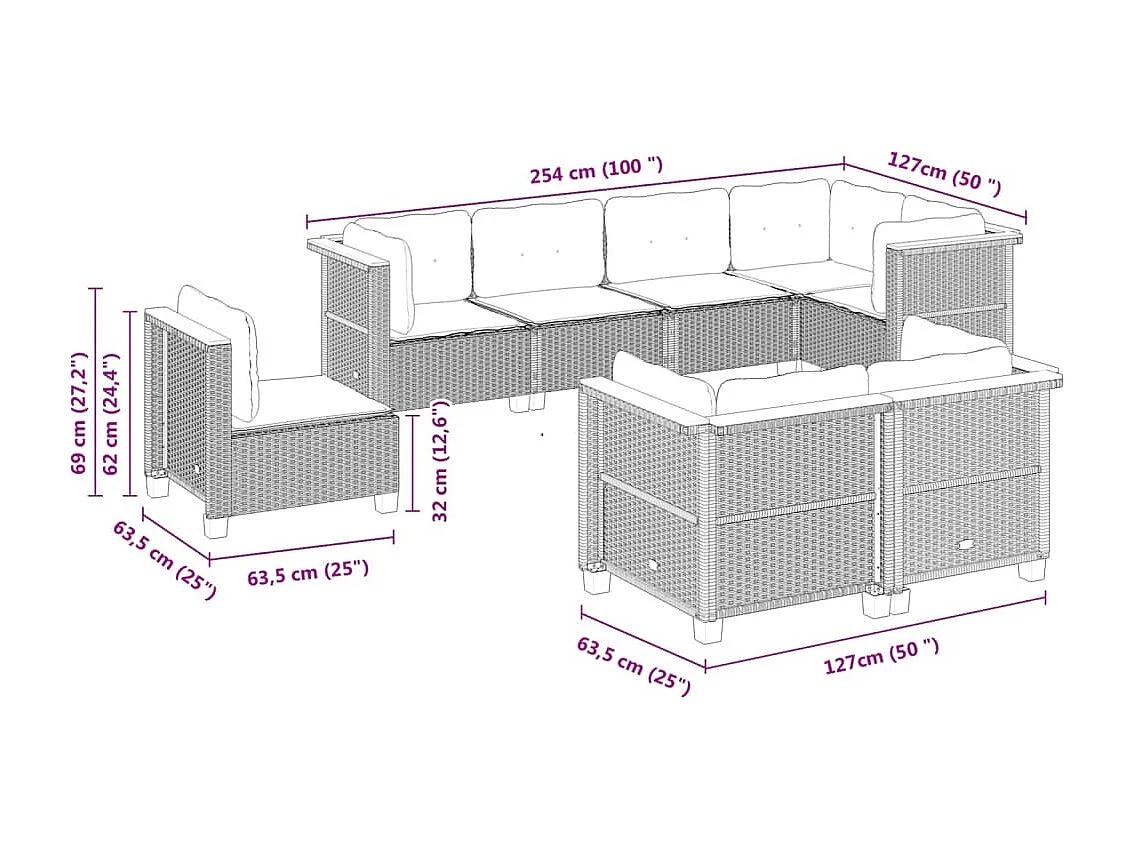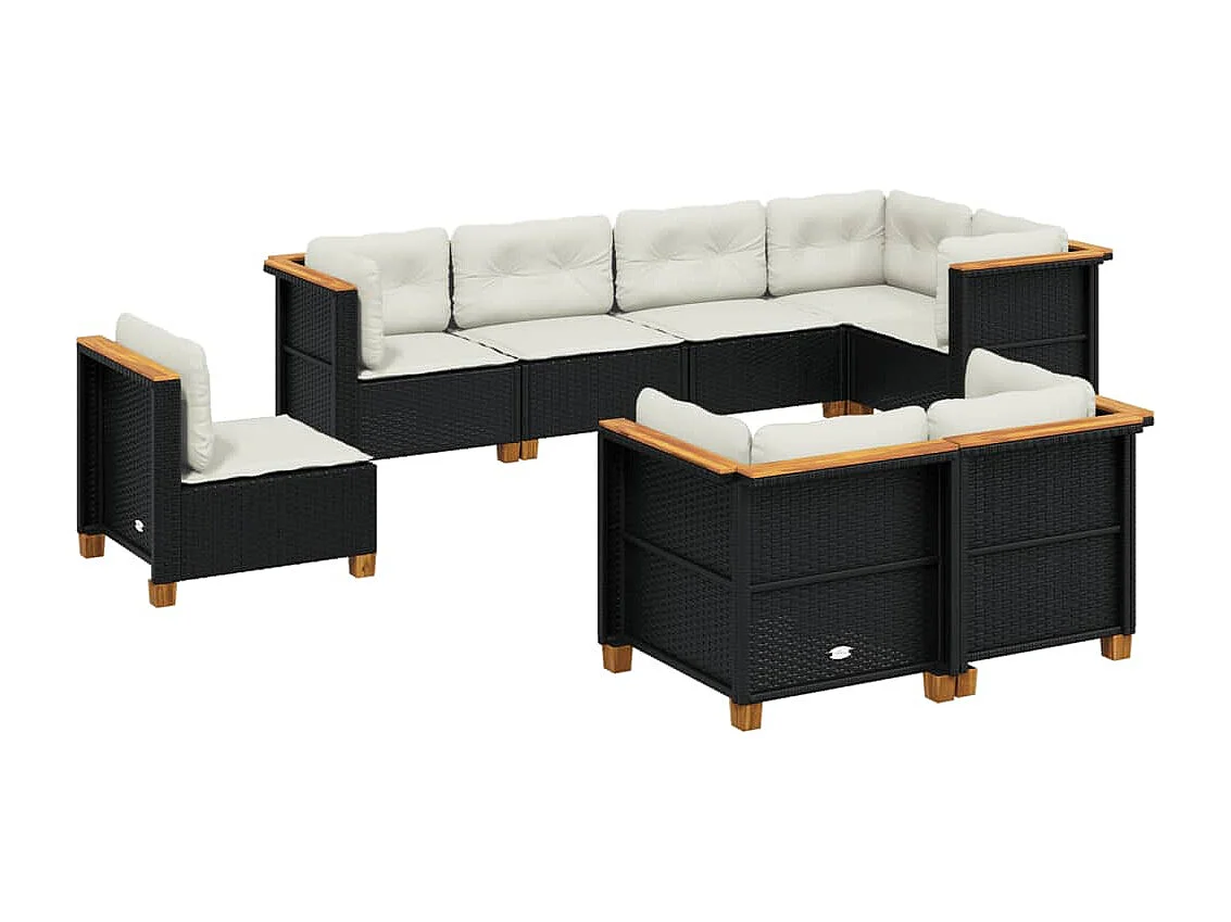 Set Divani da Giardino con Cuscini 8 pz Nero in Polyrattan