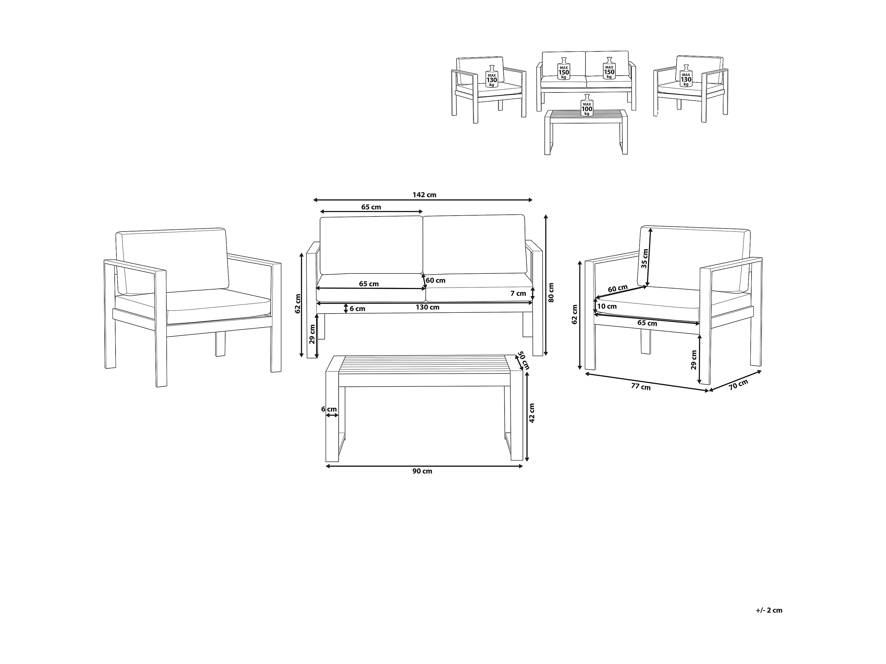 Salotto da giardino in alluminio: un divano a 2 posti, 2 poltrone e 1 tavolino Antracite con cuscini beige - TAVINYA di MYLIA