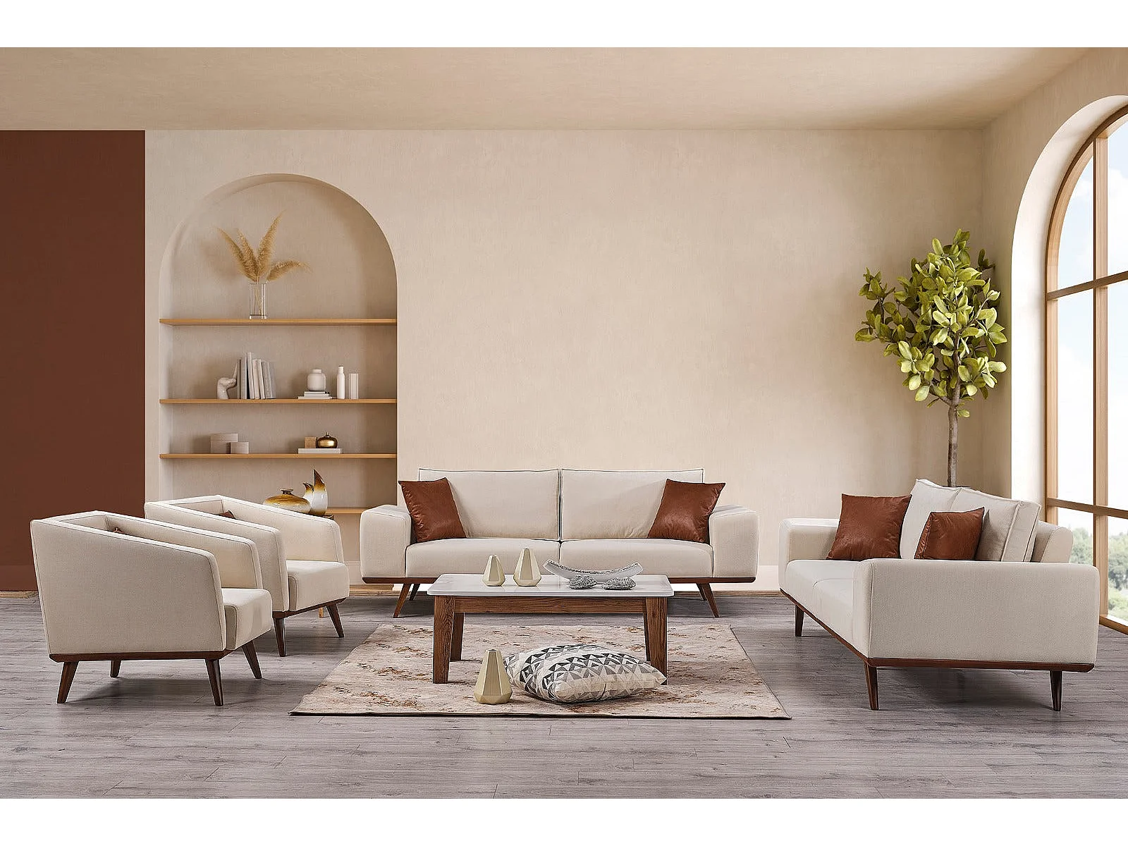 Set Divani Lucas – 2 Divani 3 posti + 1 Poltrona – Tessuto Chiaro