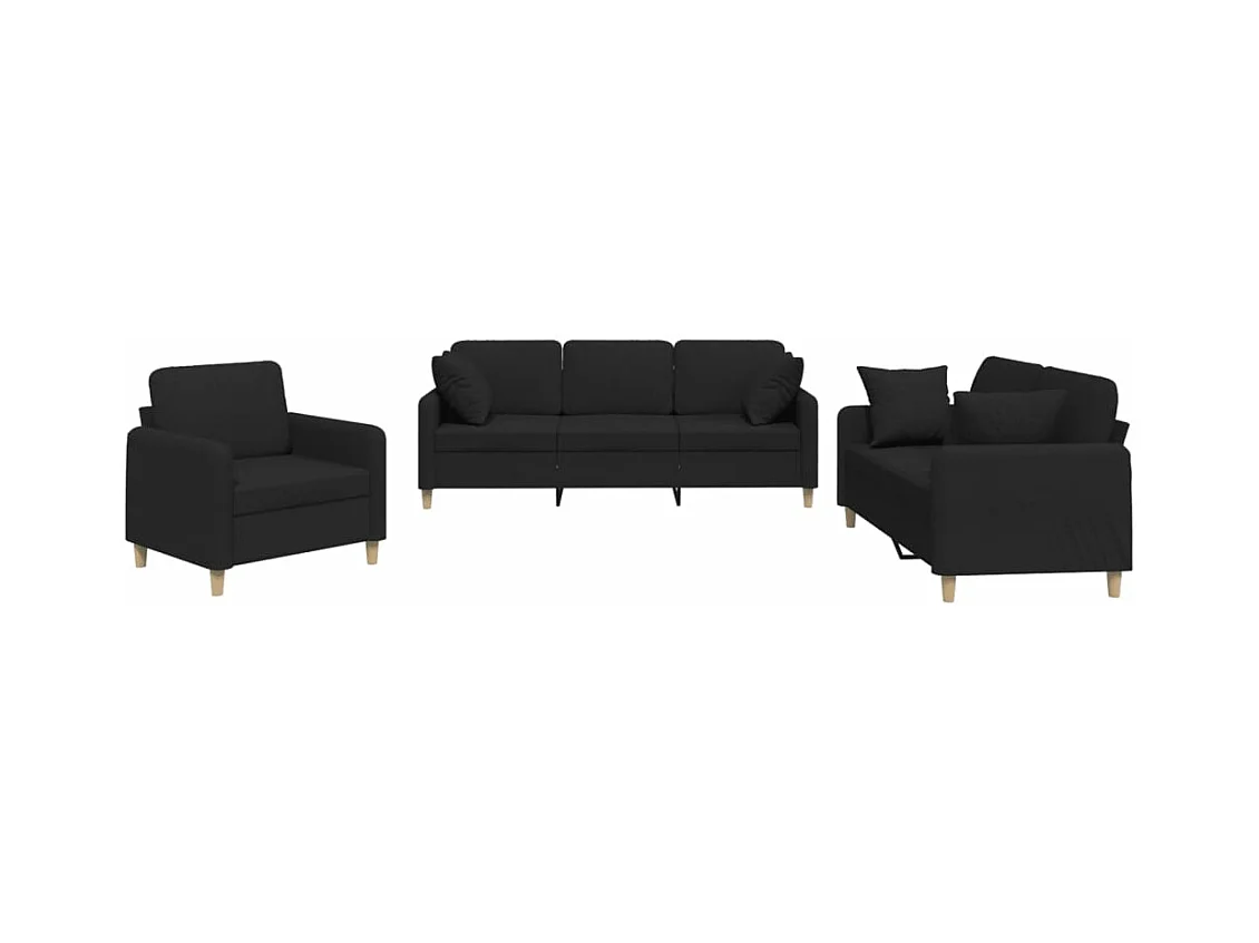 Set di Divani 3 pz con Cuscini Nero in Velluto