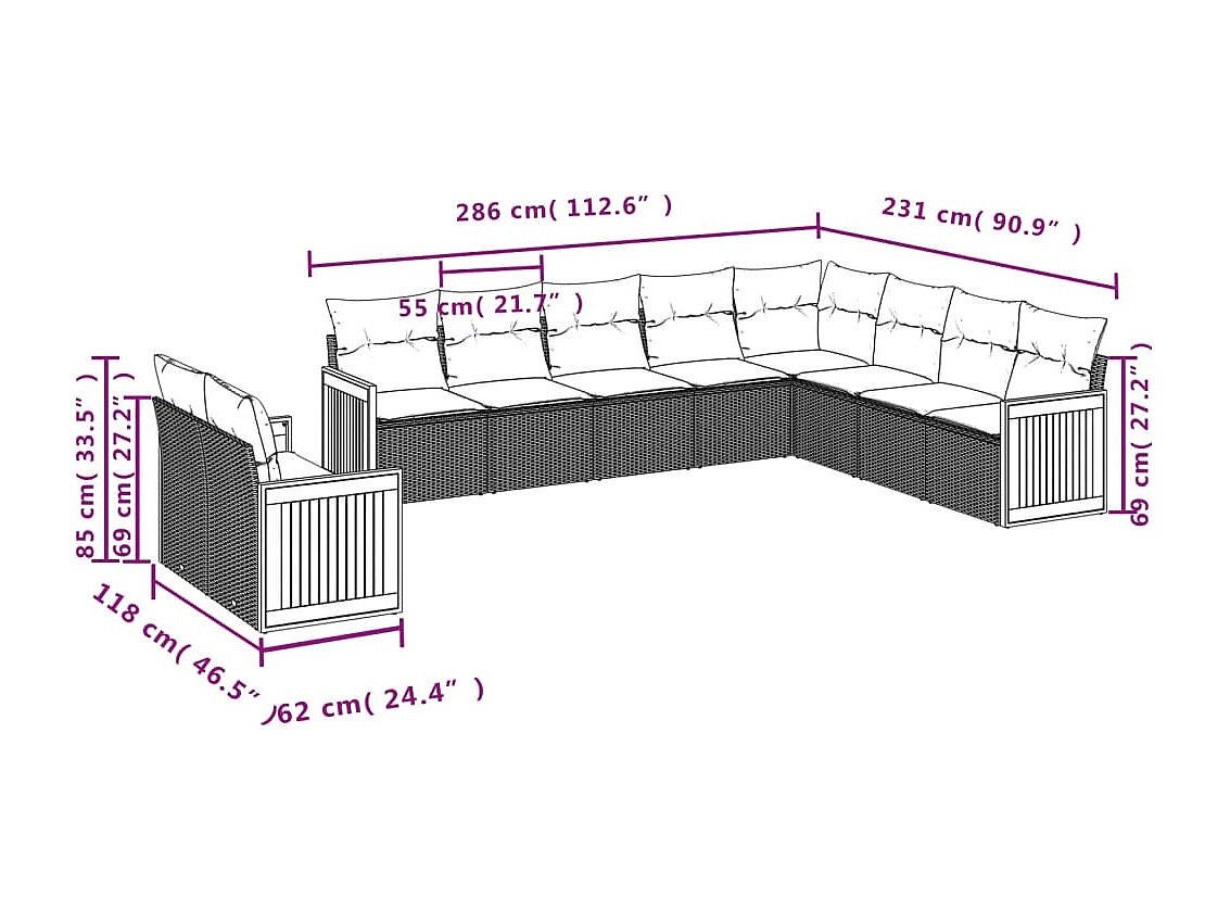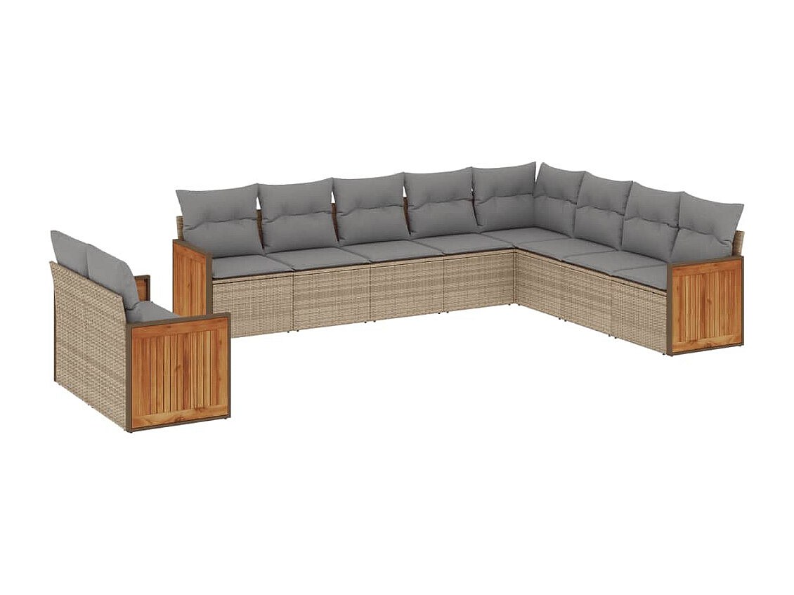 Set Divano da Giardino 11 pz con Cuscini Beige Misto Polyrattan