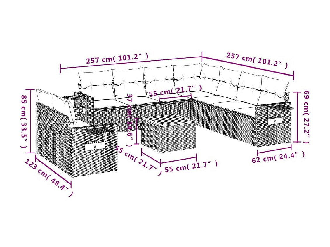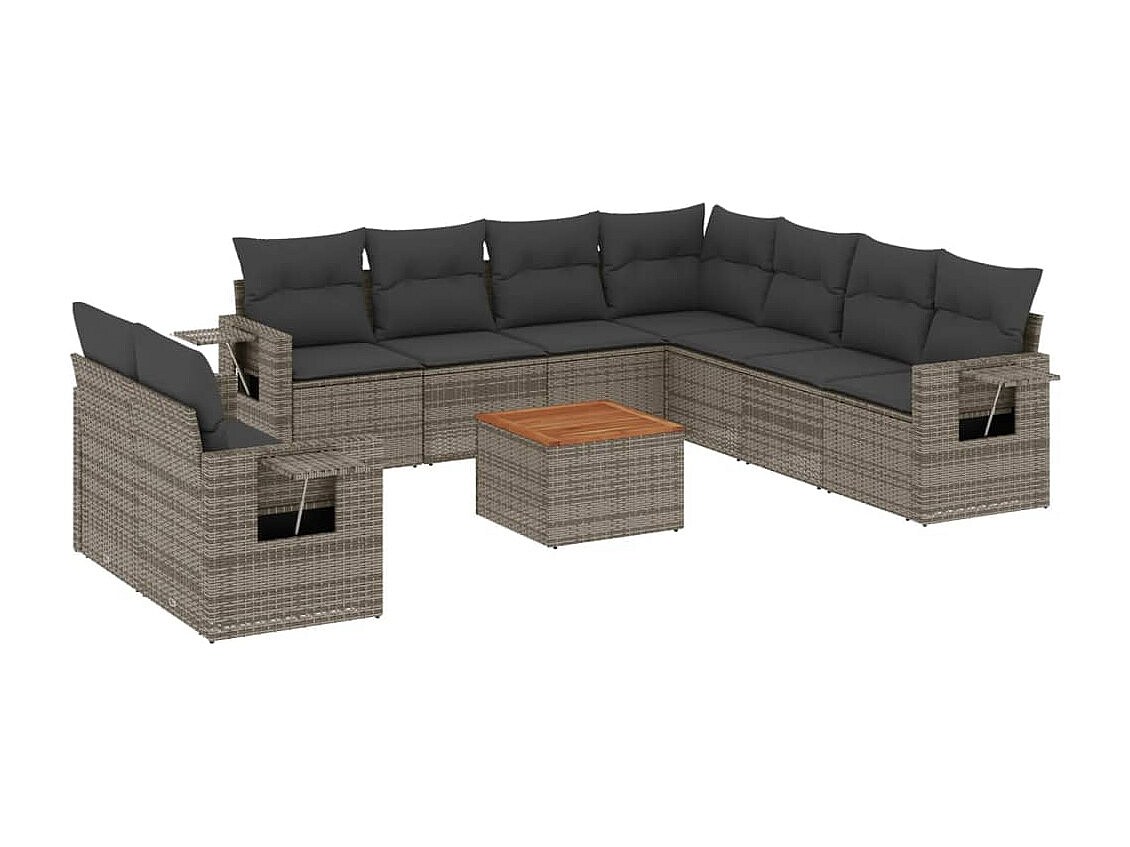 Set Divano da Giardino 10 pz con Cuscini Grigio in Polyrattan