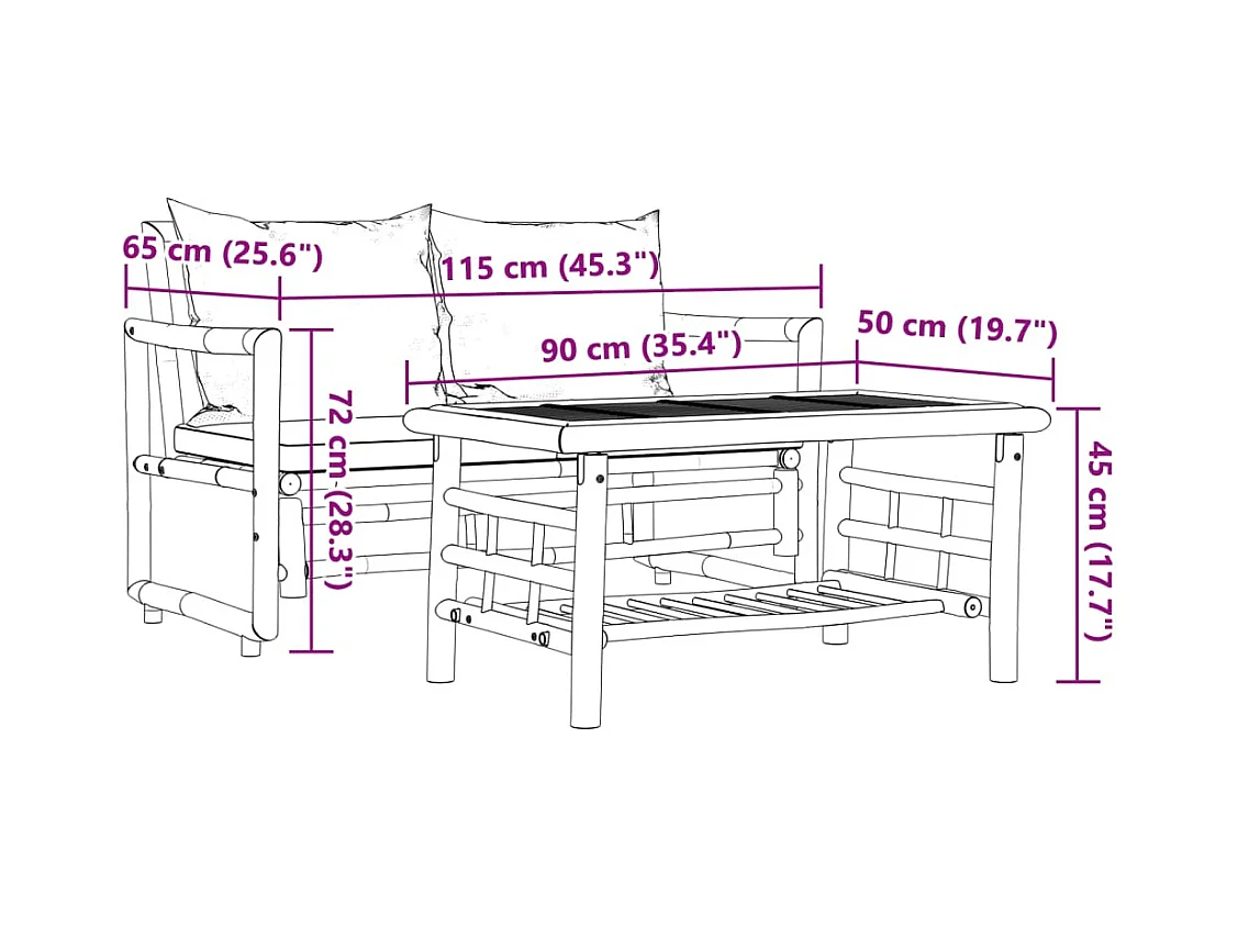 Set Divano da Giardino 2 pz con Cuscini in Bambù