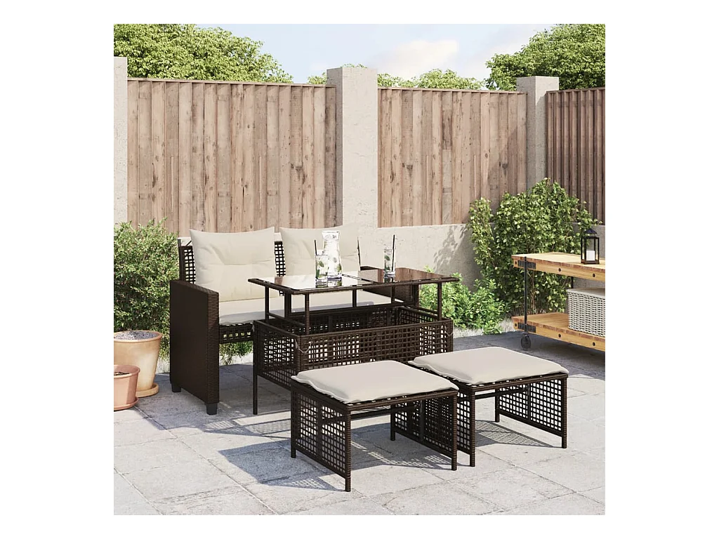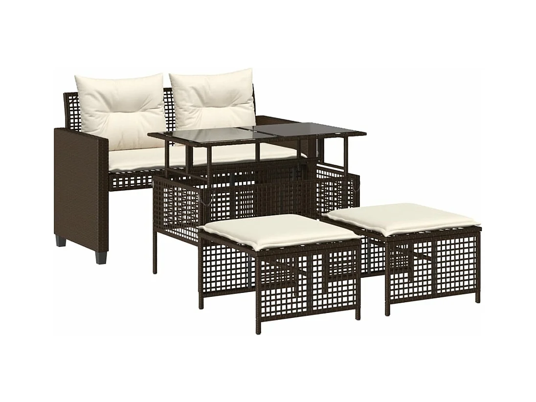 Mobile da giardino con cuscini 4 pezzi in vetro resina intrecciata marrone