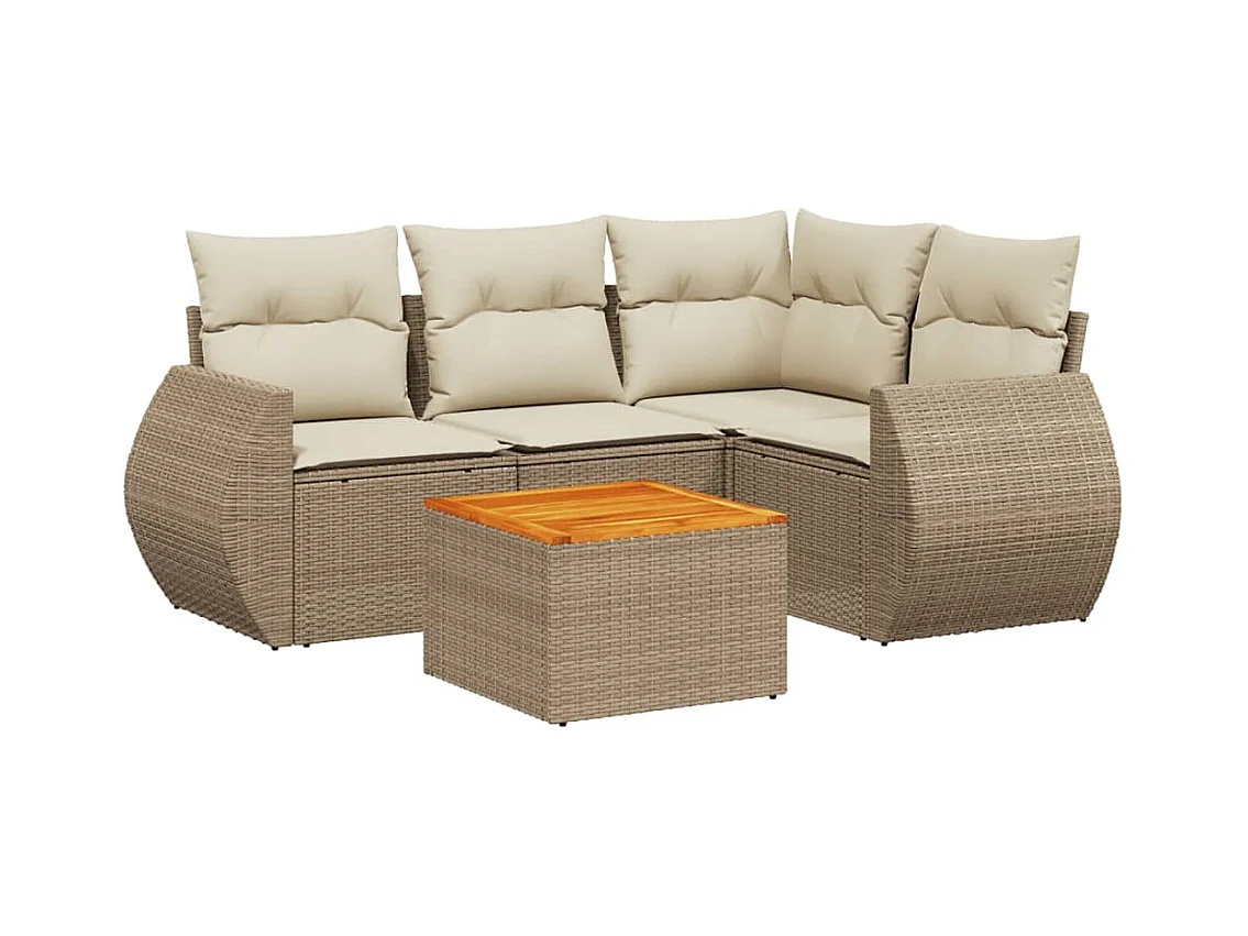 Set Divano da Giardino 5 pz con Cuscini Beige Misto Polyrattan