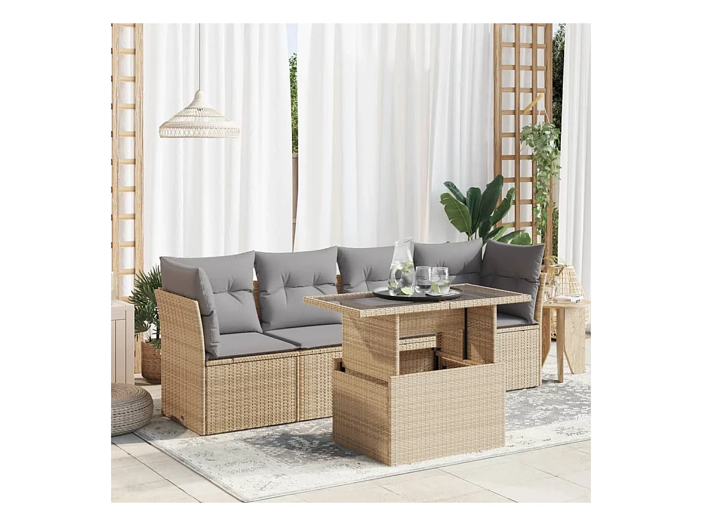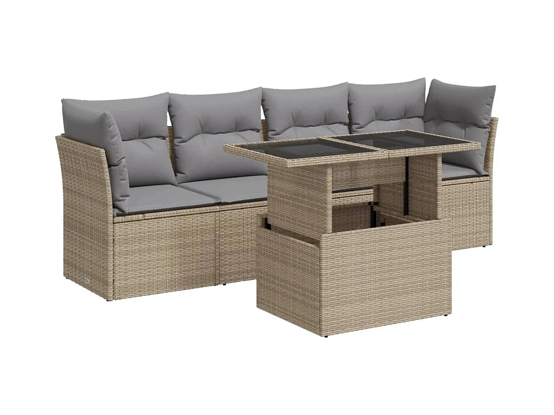 Set Divano da Giardino 5 pz con Cuscini Beige in Polyrattan