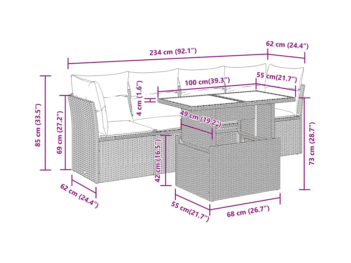 Set Divano da Giardino 6 pz con Cuscini Beige Polyrattan Acacia