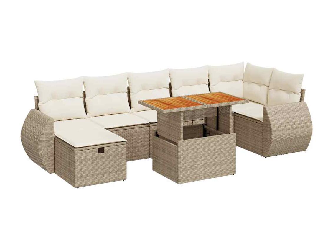 Set Divano da Giardino 5 pz con Cuscini Beige Polyrattan Acacia