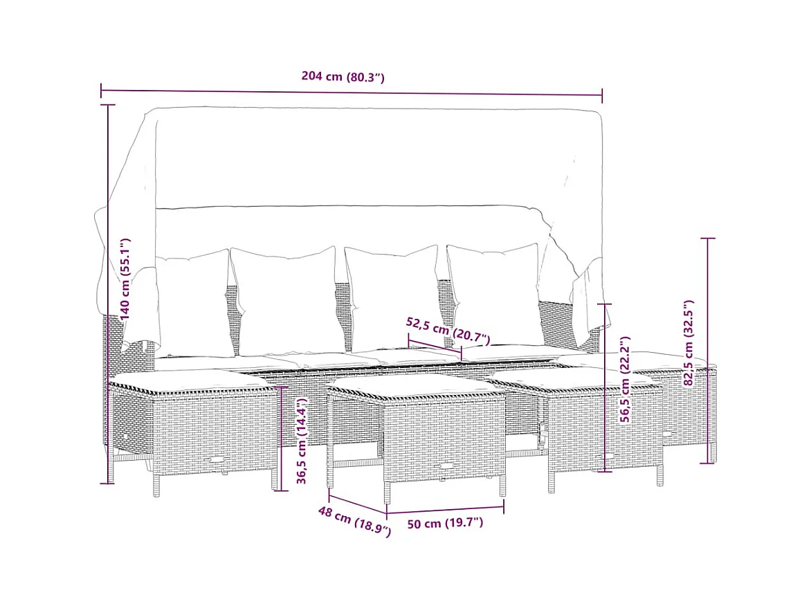 Letto Giardino Acciaio Verniciato a Polvere 260x40x68 cm Grigio