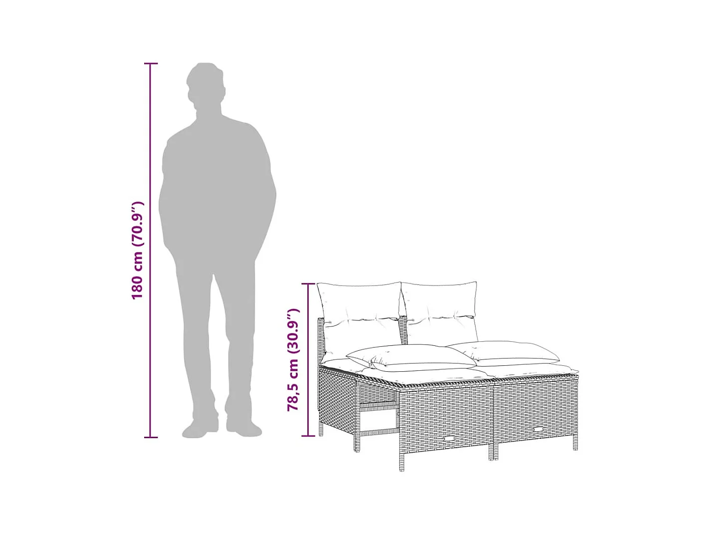 Set Divano da Giardino 5pz con Cuscini Grigio Chiaro Polyrattan