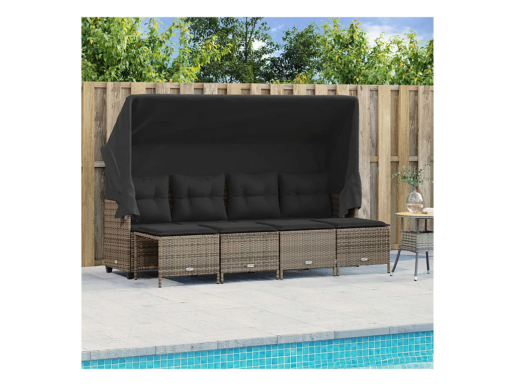 Set Divano da Giardino 5 pz con Cuscini Grigio in Polyrattan