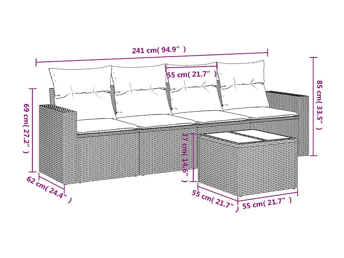 Set Divani da Giardino 4 pz con Cuscini in Polyrattan Grigio