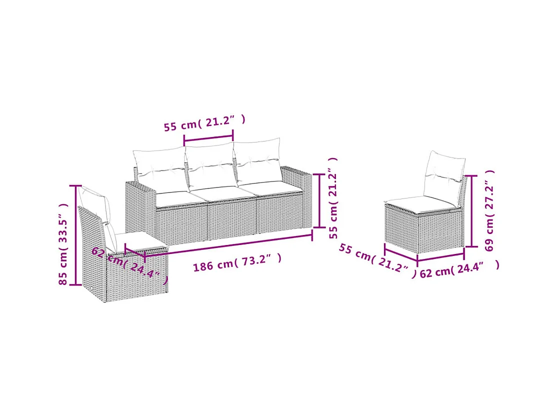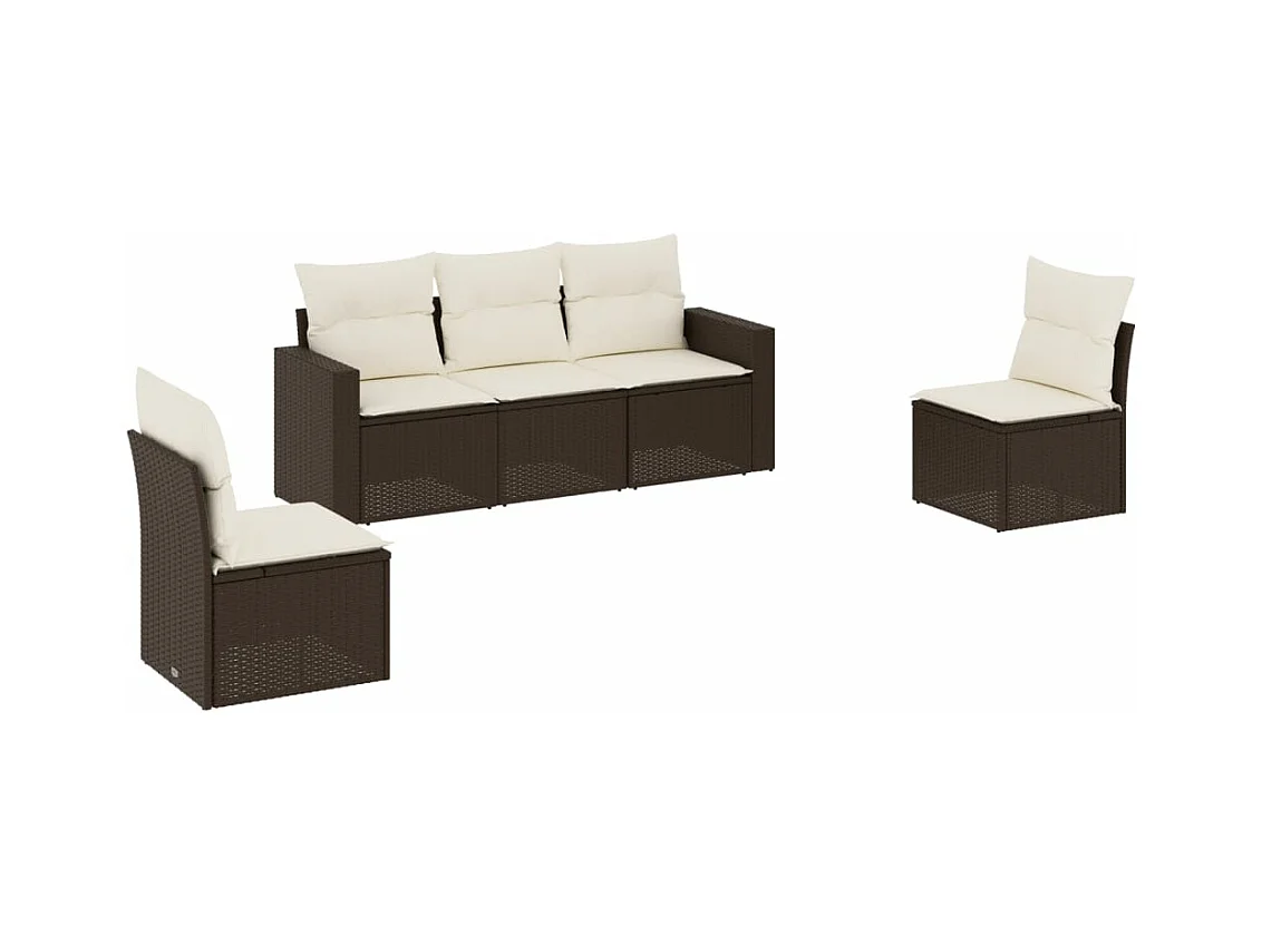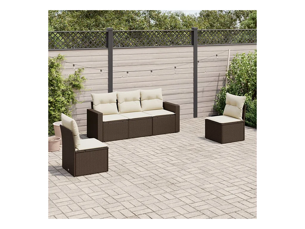 Mobile da giardino con cuscini 5 pz in resina intrecciata marrone
