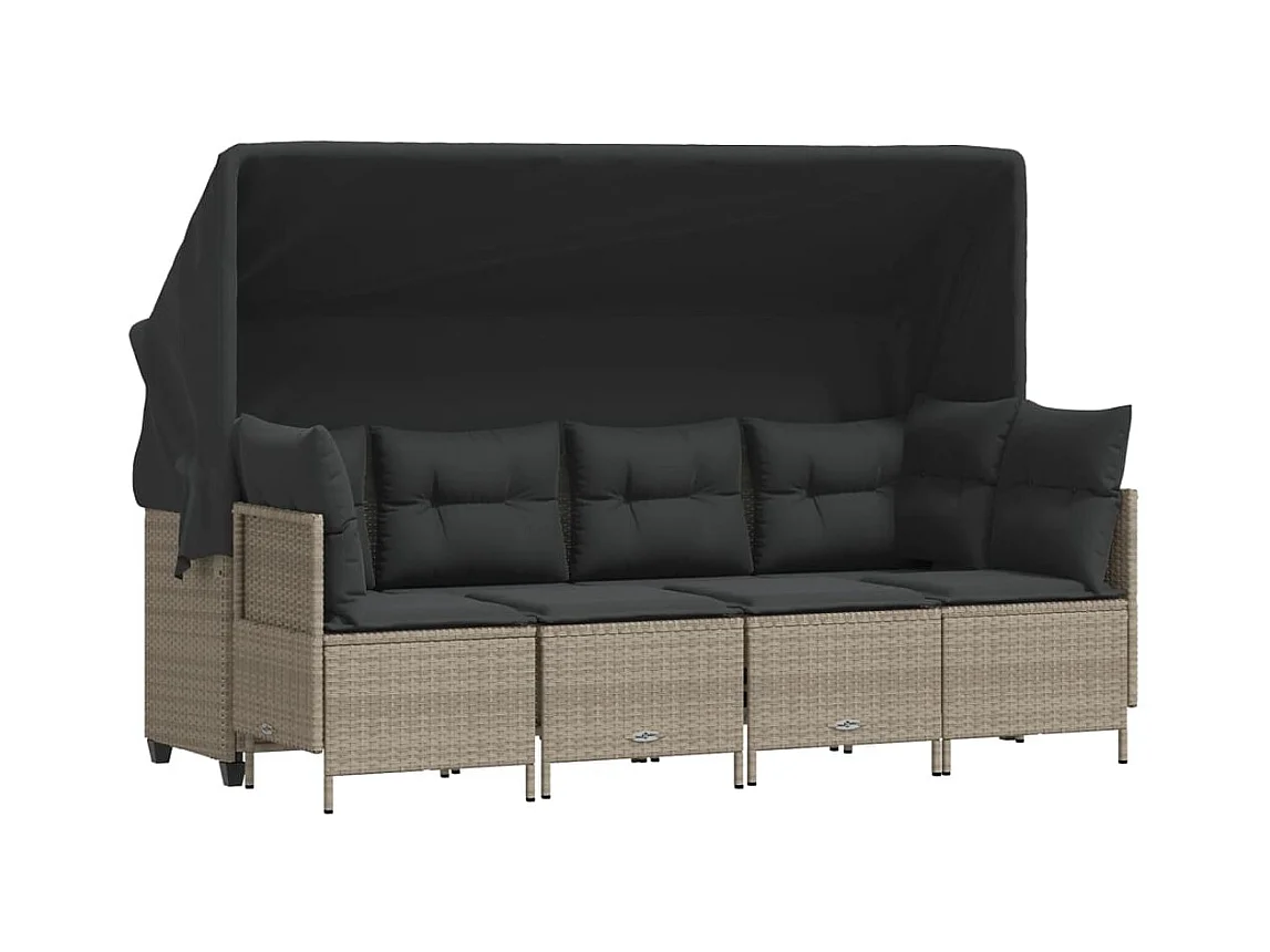 Set Divano da Giardino 5pz con Cuscini Grigio Chiaro Polyrattan