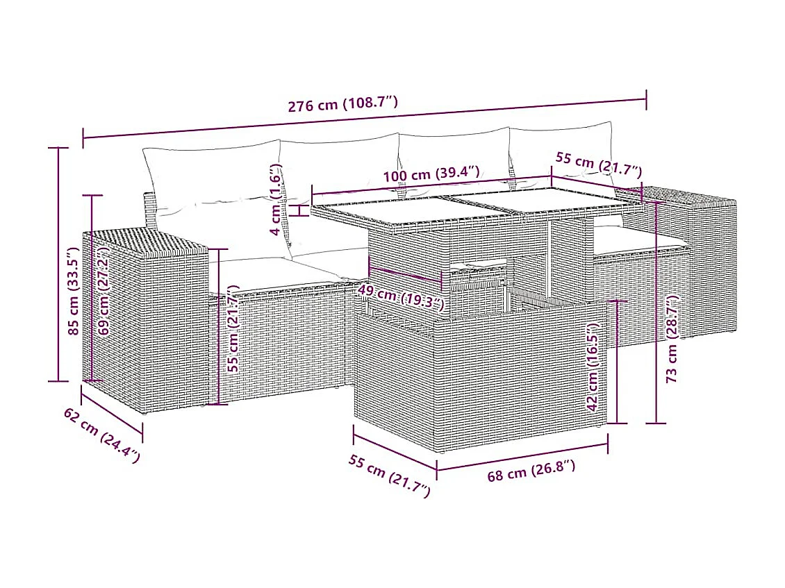 Set Divano da Giardino 6pz con Cuscini Grigio Polyrattan Acacia