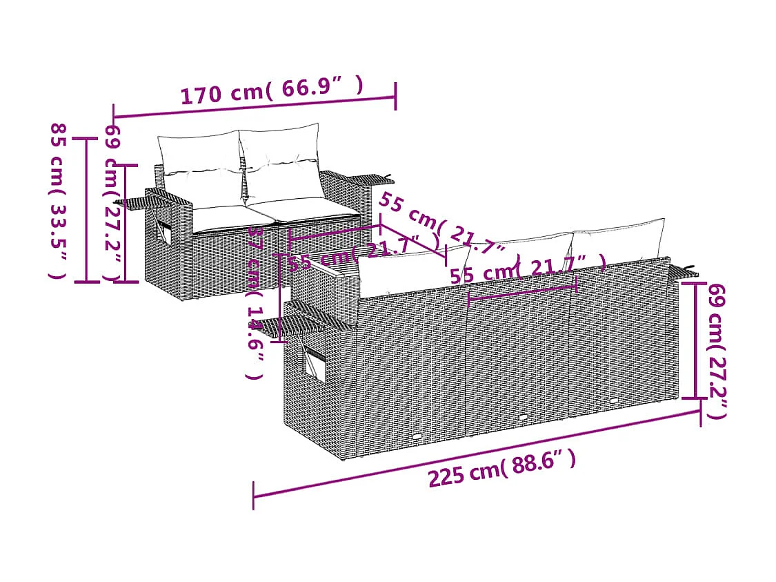 Mobile da giardino con cuscini 7 pz in resina intrecciata beige