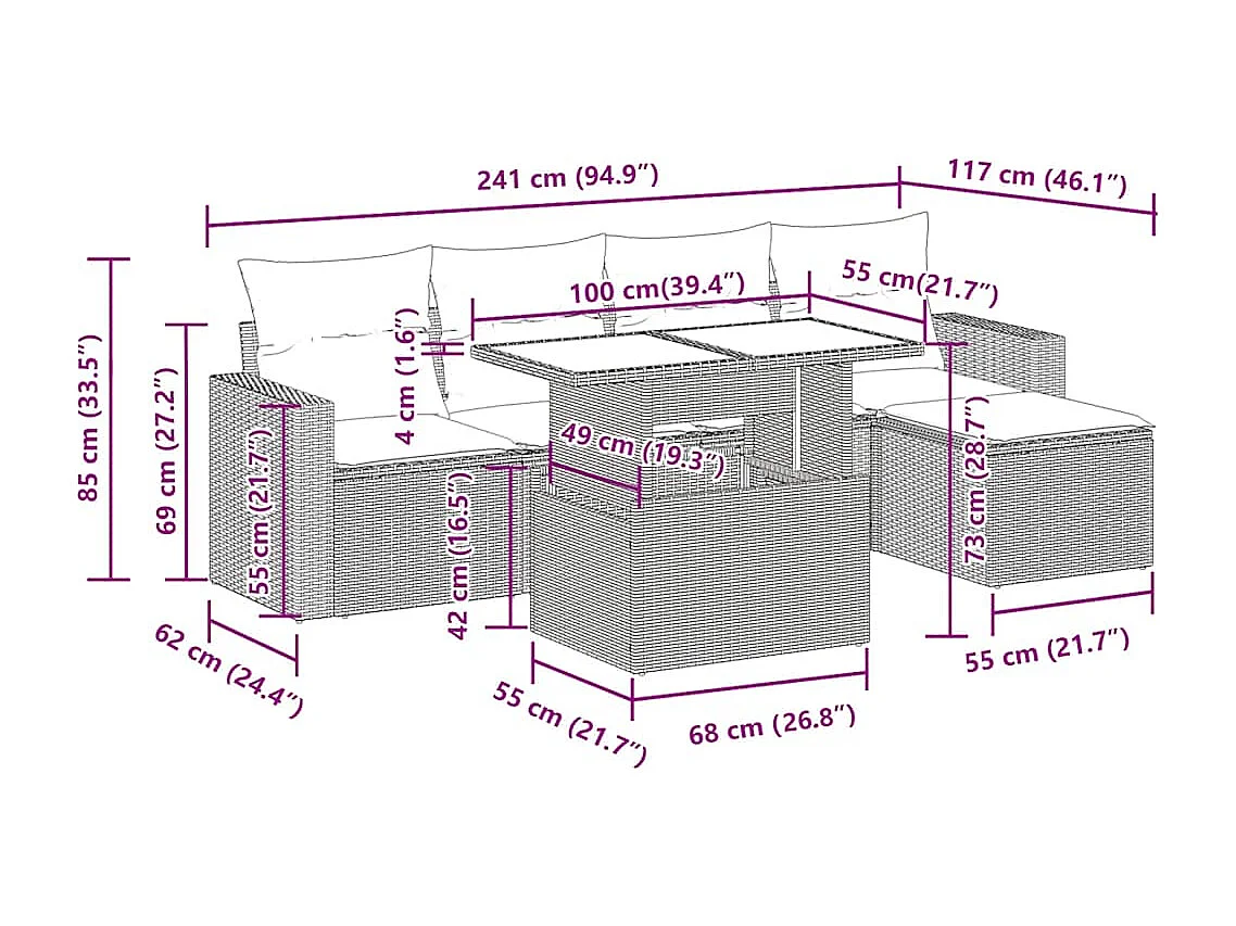 Set Divano da Giardino 6 pz con Cuscini Beige in Polyrattan