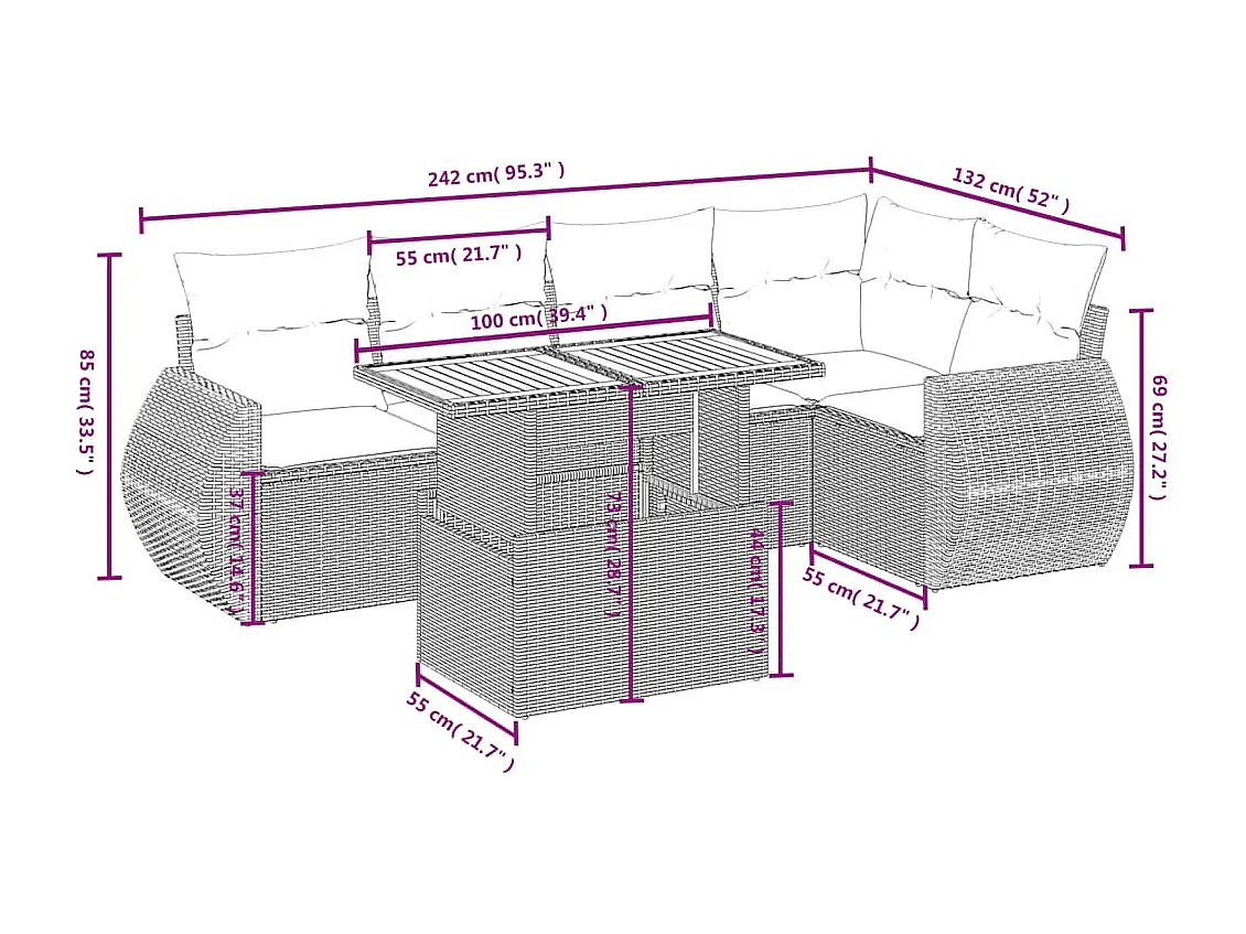 Set Divano da Giardino 6 pz con Cuscini Beige in Polyrattan