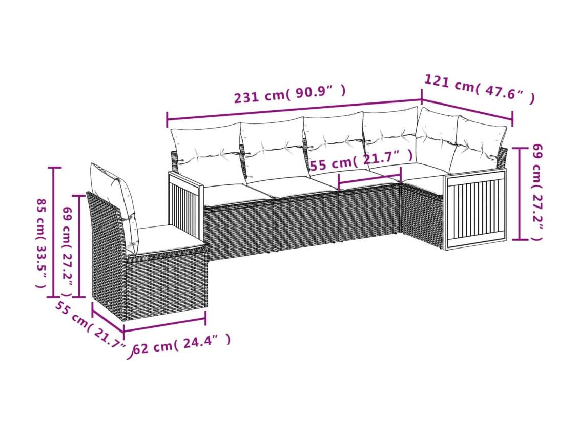Set Divano da Giardino 6 pz con Cuscini Beige in Polyrattan