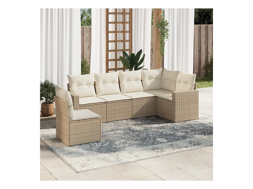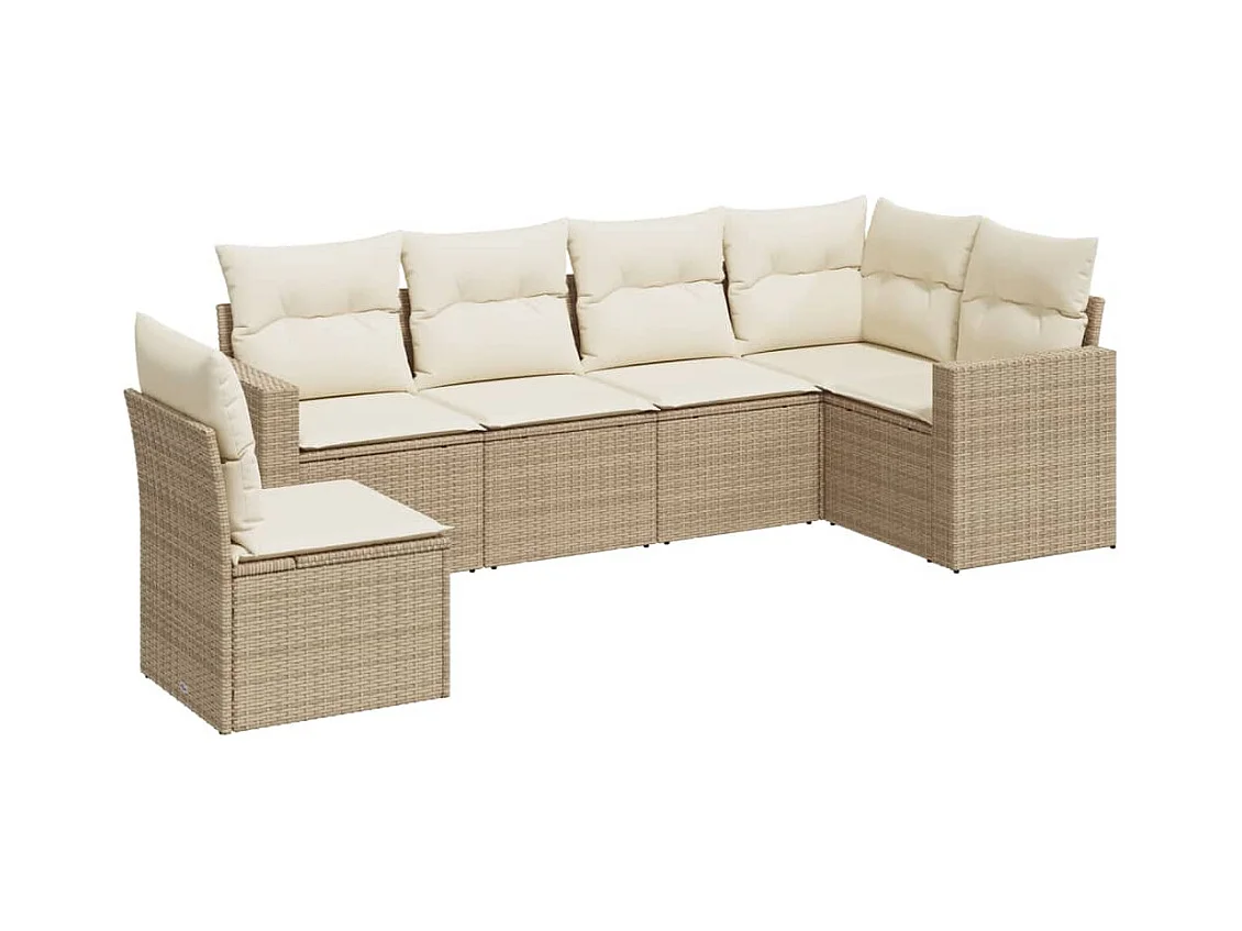 Mobile da giardino con cuscini 6 pz in resina intrecciata beige